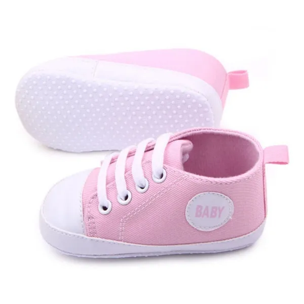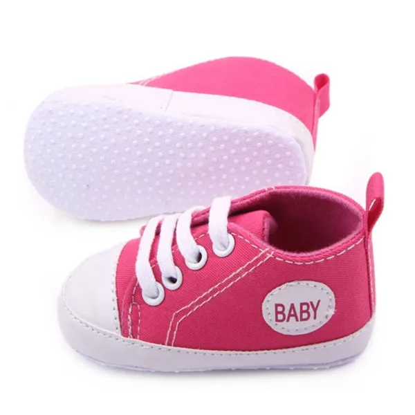 Specifics: Color: Red, Pink, White, Yellow, Rose, Dark Green, Dark Blue, Coffee, Blue, Light Blue, Black, Purple Material: Canvas Style: Casual Baby Sneakers Shoes Features & Fastening: Slip-On Weight: 54g-62g (approx) Size: 11/12/13/14 (Fit For 0-12 Months Baby) Note:Please choose the size by Sole Length, the age is just for reference. Size Sole Length Sole Width Recommended Age 1/11 11cm/4.33" 4.7cm/1.85" 0-3 months 2/12 12cm/4.72" 4.9cm/1.93" 3-6 months 3/13 13cm/5.11" 5.1cm/2.00" 6-9 months 4/14 14cm/5.51" 5.3cm/2.08" 9-12 months Package Includes: 1 Pair Baby Sneakers Shoes