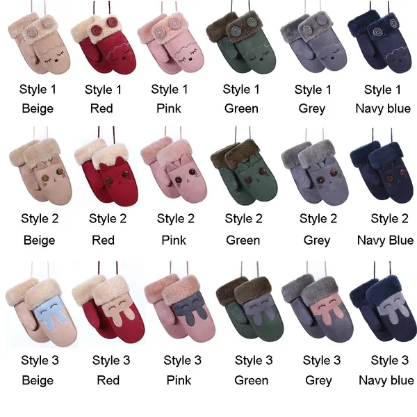 Faux Suede Thickened Children Mittens Material: faux suede Kids Fashion Winter Warm Cartoon Animal Gloves Size: for 2-8 years old kids 100% Brand New and High Quality Type: mittens Gender: unisex Package included: 1 Pair* Winter Gloves