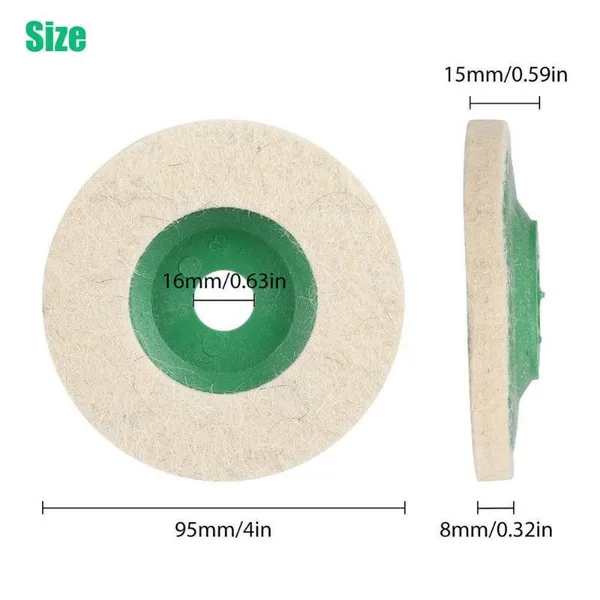Features: * High Quality: Made of good wool fiber, soft & environmental-friendly natural material without scratching the surface when polishing. * Size:10 Pcs in total. Bore diameter is 16mm (for 100 angle grinder used); Thickness:8mm. * Sturdy & Durable: The disc pad is wear-resistant and safe for a long service period. * Wide Application:These buffing wheel disc pads are widely applicable in various surface buffing and cleaning, such as metal dusting, glass, and ceramic polishing, marble, automotive and wood floor polishing, etc. Specification: * Type: Buffing Wheel Disc * Materia: Wool fiber + Plastic * Quantity: 10Pcs * Diameter: 4-inch * Bore Diameter: 16mm * Thickness: 8mm * Application: various surface buffing and cleaning * Fit for: metal dusting, glass, and ceramic polishing, marble, automotive and wood floor polishing, etc. Package Included: * 10 x Polishing Wheel Buffer Pads Note: 1.The real color of the item may be slightly different from the pictures shown on website caused by many factors such as brightness of your monitor and light brightness. 2.Please allow slight manual measurement deviation for the data. Name of EU responsible person:eVatmaster Consulting GmbH Address of EU responsible person:Bettinastr. 30,60325 Frankfurt am Main, Germany Email of EU responsible person: contact@evatmaster.com