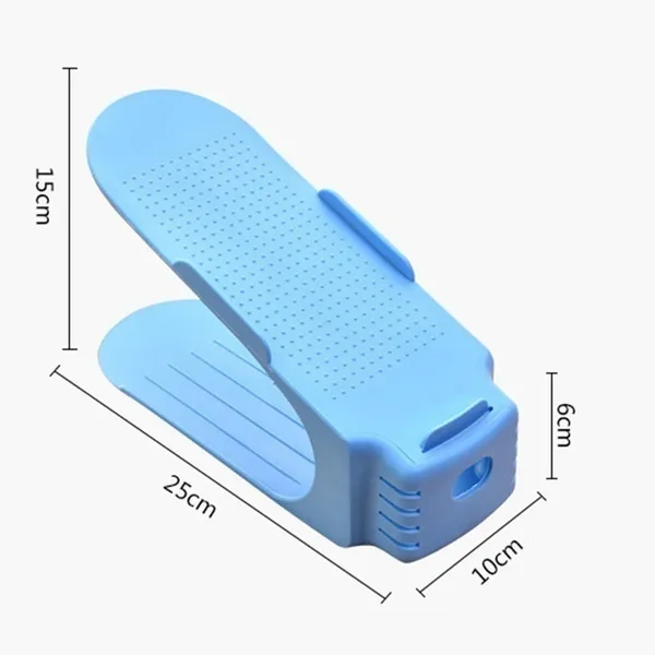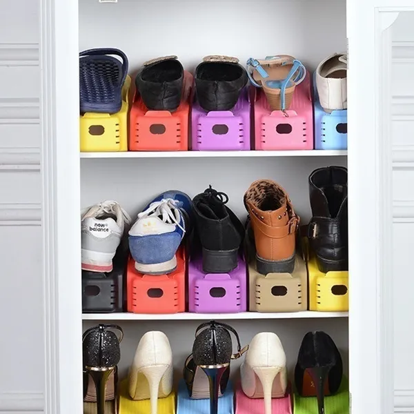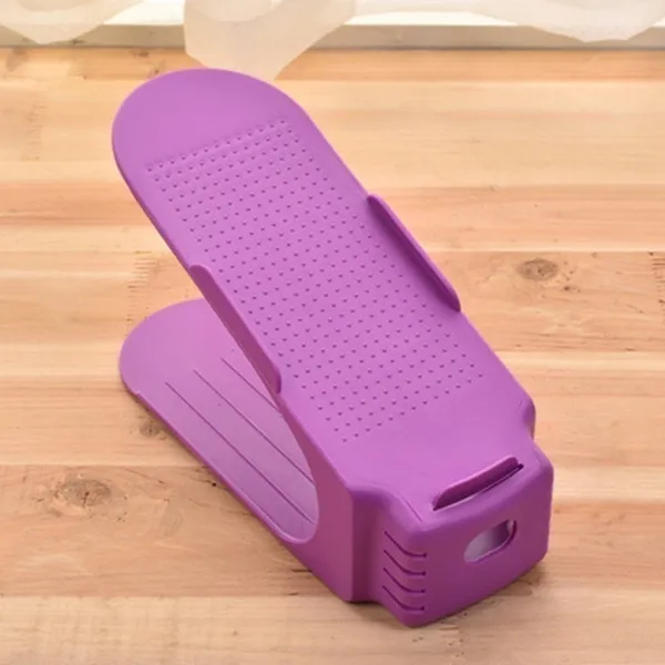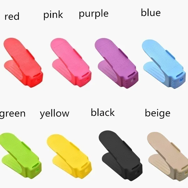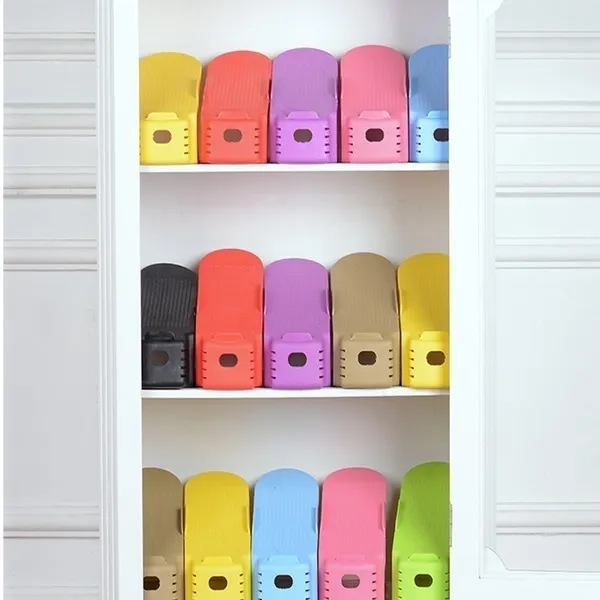 Features: Lightweight and compact Made of heavy duty plastic Protect the shoes not pressed deform Effectively use space more than twice the space, incorporating more convenient! Shoes upper head out, the lower head inward, get more convenient! Size:as the picture show Color: purple,beige,black,pink,red,blue,green, yellow Package includes: 10 x Shoes Shelfs