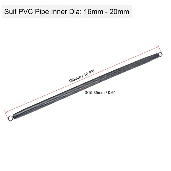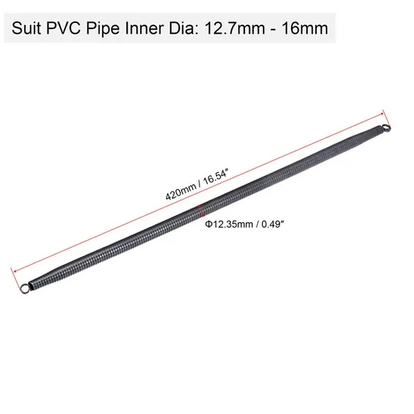 Features: It is suitable for the installation and treatment of household water and electricity pipes, the pipe treatment of home decoration, and the installation and treatment of water wires and pipes in other places. The PVC pipe bender is forged from high-carbon steel, the overall high temperature quenching heat treatment, high hardness, wear resistance, long service life, easy to use. Insert the spring bender into the PVC pipe, and then you can bend it to the angle you want, insert the spring bender into the PVC pipe where you need to bend, turn the pipe to the required angle, and then take out the spring bender. Choosing a pipe bender with a suitable pipe size will make the work smoother. Wear protective gloves to protect your hands. Specifications: Outer Diameter: 12.15mm / 0.48-inch, 12.35mm / 0.49-inch, 16.15mm / 0.64-inch, 15.35mm / 0.6-inch Total Length: 420mm / 16.54-inch, 430mm / 16.93-inch Suit PVC Pipe Inner Dia: 12.7mm - 16mm Material: High-carbon Steel Surface Treatment: Polished Chrome Plating Package Included: 1/2 Pcs x Spring Tube Bender