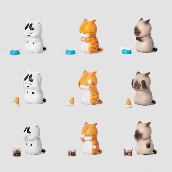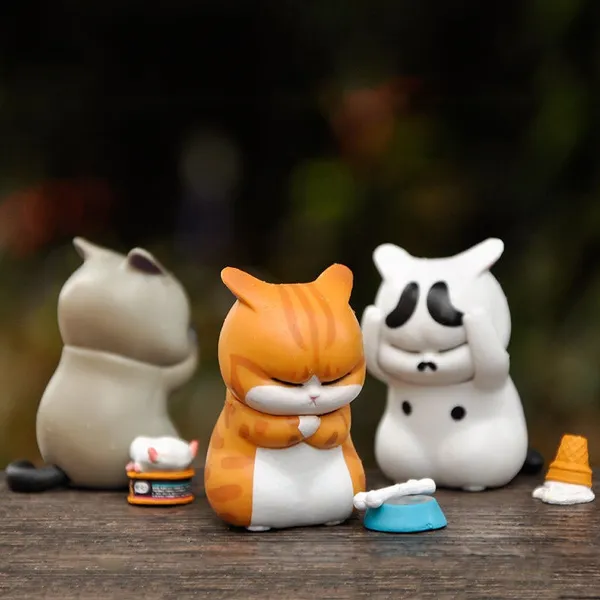 Pet Cat Figurines Model Toys Kawaii Unhappy Kitten Cat Figure Mini Animals Homecoming ornament Kid Xmas Gift Collection Material: PVC Size(approximately): 8*3*4cm Application: Having fun and collection Package: Packed in OPP bags