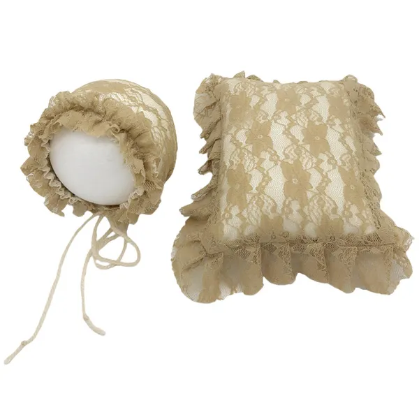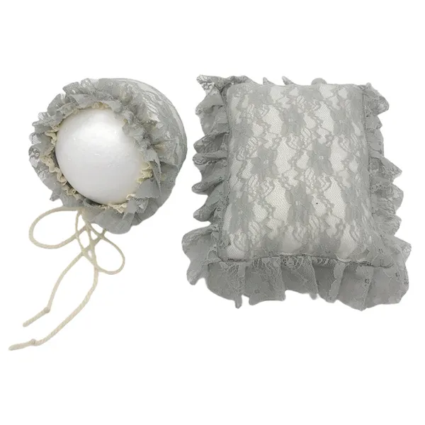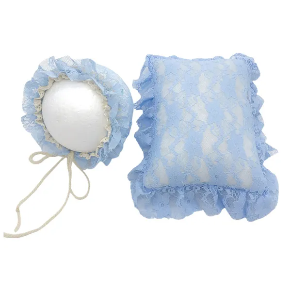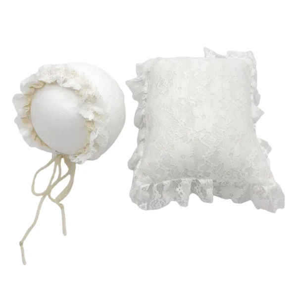 2 Pcs/Set Newborn Photography Props Baby Infants Lace Hat Pillow Posing Aid Photo Shooting Outfits Accessories RDV