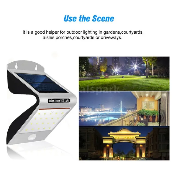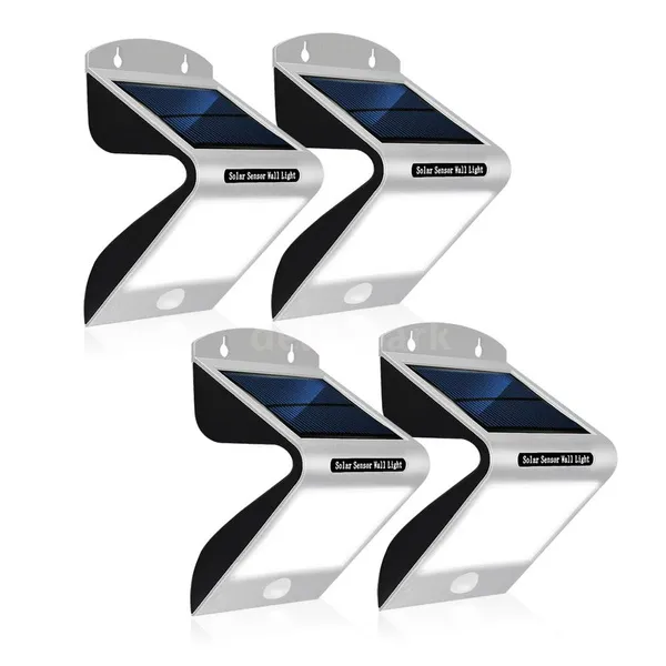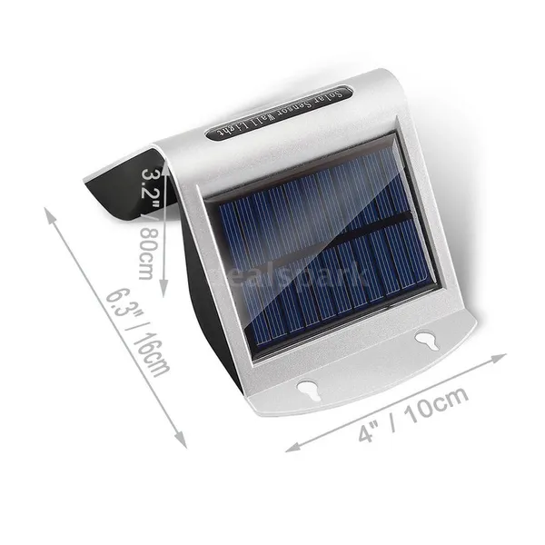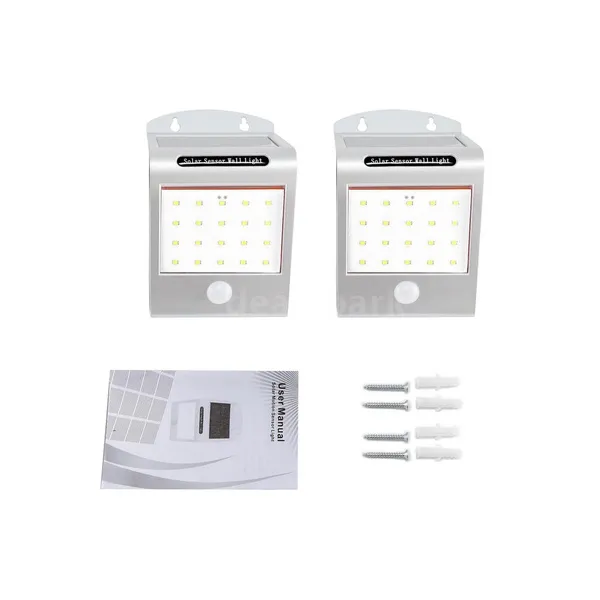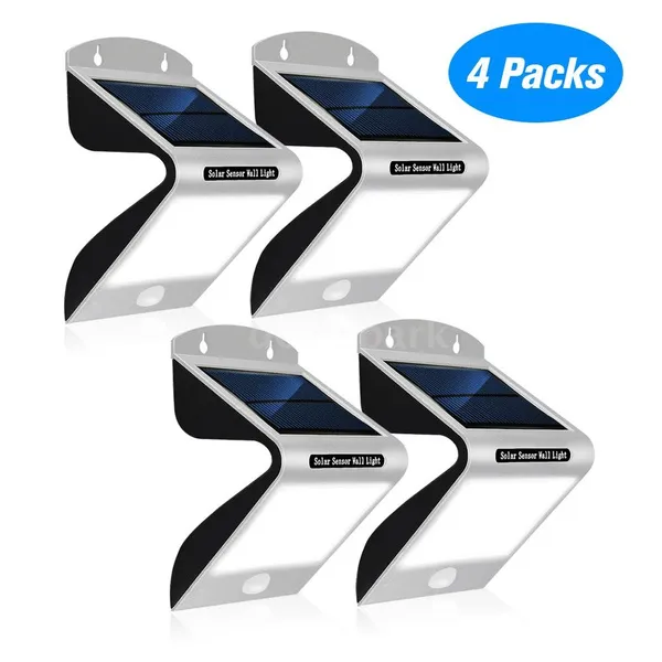 Package List: 4*Solar Light 4*Bag of Screws 1*User Manual(English) Features: *Solar Light:Solar pow-ered,long working time.Let the solar panel face the sunlight directly during the day,full charged lights will light up automatically at night,intelligent energy-saving. *Solar Sensor Lights:When people approach the light,it will automatically turn on the strong light, automatically shut down after 30 seconds and then the 2pcs weak lights in the backward will light. *Water resistance: IP65 waterproof is suitable for all kinds of weather. It is a good helper for outdoor lighting in gardens,courtyards,aisles,porches,courtyards or driveways. *Adopting arch bridge cool design,unique appearance and practical for using.The sensing range is 5-8M, and the horizontal 120 degree sensing angle. *20 LED lamps for solar light,brighter and safer at night compared with other common solar lights. Specifications: Solar panel: 5.5V 120mA 0.7W LED pow-er: 1W,6500K Motion angle and distance: 120 degree,5-8M Current in standby mode:<0.1mA Current in dim mode:<30mA Current in lighting mode:<300mA Lighting mode:ON(high light or dim light)/OFF B-attery(each light):Built-in 1*18650 lithium batt-ery 3.7V 1200mAh Waterproof:IP65 Quantity:4 Packs Item Size:160*100*80mm Package Information: Package Size: Approach.19.6*12.5*12.5cm/7.72*4.92*4.92in Package Weight: Approach.1000g/2.2lb