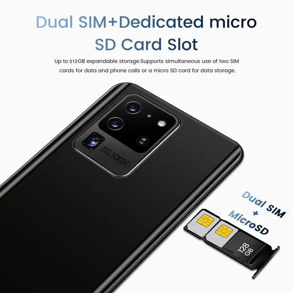 Feature: Free gift:1x128GB TF Card - 6.5inch Full Display The S20U delivers the viewingexperience you always wanted, With a massive 86%screen-to-body ratio on a 6.5"inch screen - 16MP Front CameraClear and Stylish Selfies The S20U world-leading 16MP front camera turnsyour every selfe into a work of art Experience greaterbrightness, color vibrancy, clarity and dynamic range.even in the dimmest light, Whenever you needit. your S20U is right there with you, capturing everymoment with crystal-clear precision, Turn your selfiesinto masterpieces and shine in every photo - Rear HD camera The S20U features a 32MP camera combination. The main camera sportsa large f/1.8 aperture and 1.28um pixels, This strong combination boosts photosensitibityin backlight or low light, Just point and shoot, and S20U will makesure your pictures remain clear and bright - Face Access The S20U also supports facial recognitionUpon activation, S20U scans your facial features and unlocks instaneouslyAccessing your phone has never been so easy, or so fun - Powerful Performance The MTK6889 mobile platform with 7mm process technology makesyoung people who love the young and stiand other popular games.The game ison and lower - Android 10.0 The new interactive design makes the operation simple and simple, the use of themobile phone is so simple and straightforward, everything is handy - Dual SIM card + TF card Dual card dual standby, card slot does notdistinguish between the main and the deputy, supporting the worlds 50 major communication carrier networks Specification:Factory direct sales, better quality but lower price is our target and mission! Model No.: S20U CPU: MTK6889 Deca Core (Latest 10 Core) SIM/TF: 2 SIM Card Slots (Nano SIM) + 1 TF Card Slots (Maximum support extension 128GB) Screen: 6.5 Inch 4K Screen Resolution :1440*3200 Camera: Front Camera 16MP+ Rear Camera 32MP Memory: 12GB RAM+512GB ROM System: Android 10.0 System Battery: 5000mAh High Density Lithium-ion battery Unique Back Cover: Hot Bend 3D Plating Gradient Glass Back Cover. It is art, it is also technology! Net-Work: GSM850/900/1800/1900MHz, 3G: WCDMA850/1900/2100MHz, 4G,5G Vibration:Support Multi Media: MP3/MP4/3GP/FM Radio/Bluetooth Multi Function: Full screen, Face recognition,Screen finger print, Dual SIM, Wifi, GPS, Gravity Sensor, Alarm ,Calendar,Calculator,Audio recorder ,Video recorder, WAP/MMS/GPR, Image viewer,E-Book,World clock Languages: Multi-language support Attention: Due to the difference in light, the actual color of the phone may be slightly different from the screen and the picture. Color names are only used to distinguish between individual SKUs. Please understand that. Thank you. The battery capacity is typical of the factory laboratory, the specific charging speed, the length of use and other data, the actual situation will be slightly different due to the power cord, power adapter, ambient temperature. When the phone is completely out of power and automatically shuts down, you need to charge your phone for more than 10 minutes to boot. It is recommended to charge when the battery is less than 20% charged. Available memory capacity is subject to preloaded software Product images and models, data, functions, performance, specifications, etc. are for reference only.We may improve the above contents. For details, please refer to the product and product description. Unless otherwise stated, the data contained in this website are our internal test results, and the comparisons are compared with our products. The mobile phone does not support the telecom CDMA 2G 3G network. Package Included: 1 x Smartphone, 1 x Charger Adapter, 1 x Headphones, 1 x User Manual 1 x phone case 1 x Protection film