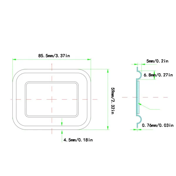 Size: A: 36x86mm/1.4x3.3in, B: 60x85mm/2.3x3.3in, C: 50x65mm/1.9x2.5in