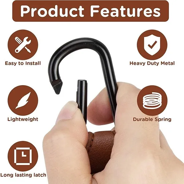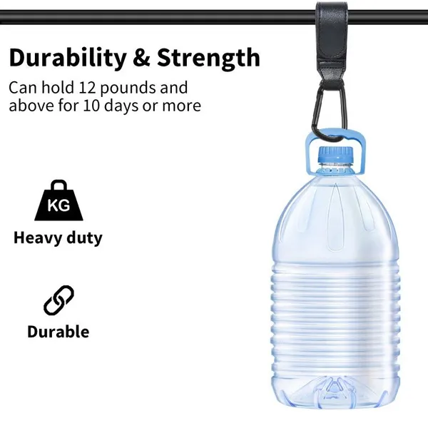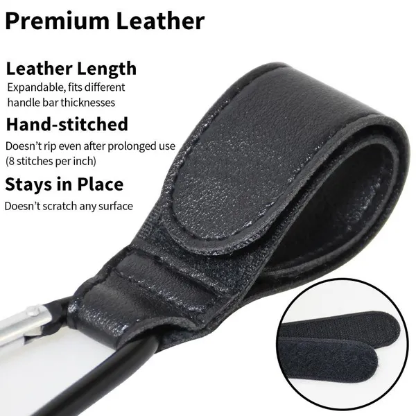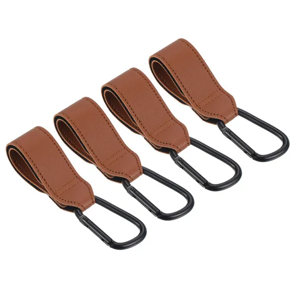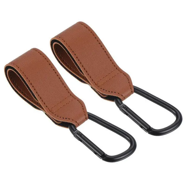 Multipurpose hooks are suitable for bicycles, golf bags, cars, and shopping carts, among others. It frees your hands to shop and walk without carrying heavy shopping bags. Specification Material: PU Leather, Aluminum Alloy Size: 160 x 31 mm / 6.3 x 1.22 inch (L*W) Packing List: 2pcs/4pcs x Stroller Hook Advantage Each bag hook is made from a rugged aluminum alloy and PU leather strap. Light and sturdy, it's not breakable and can hold items up to 6 pounds without worrying about the weight of the bag damaging hooks and shopping carts. Instruction Easy to install, simply wrap the hook-and-loop fastener around the handlebars and tighten the strap to easily install this hook accessory. NOTE: Due to the difference in natural light and display resolution, the item color displayed in photos may be showing slightly different from the real object.