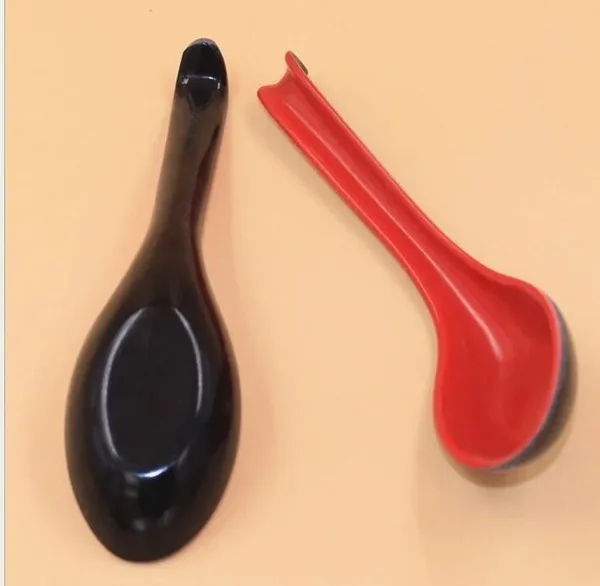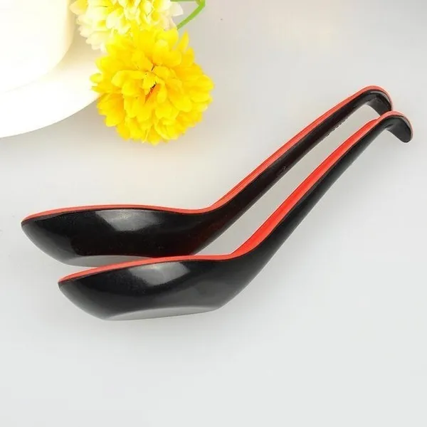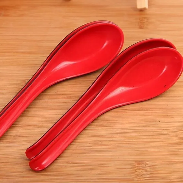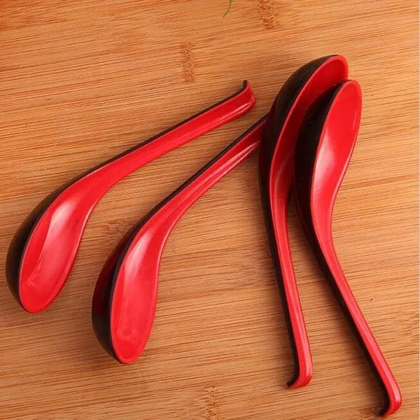 Package included: 2 pcs/set spoon 100% Brand New and High Quality Color: Red & Black ( as the picture shows ) Material: Plastic Size: L*W: 16*4cm