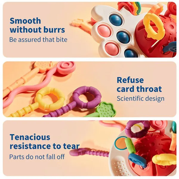 Packages include: 1* Baby Finger toys Description High quality silicone material, safe, high temperature disinfection Exercise your baby's hand grasping ability, hearing ability, etc Fun toys and a variety of ways to play
