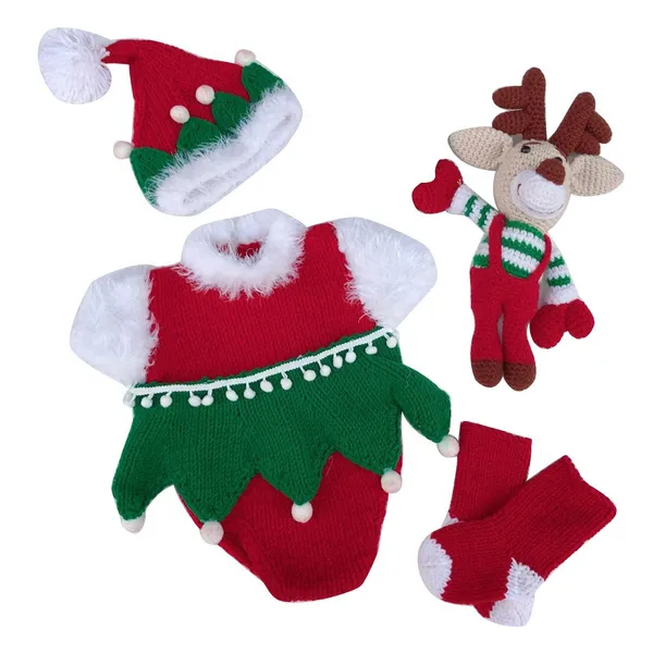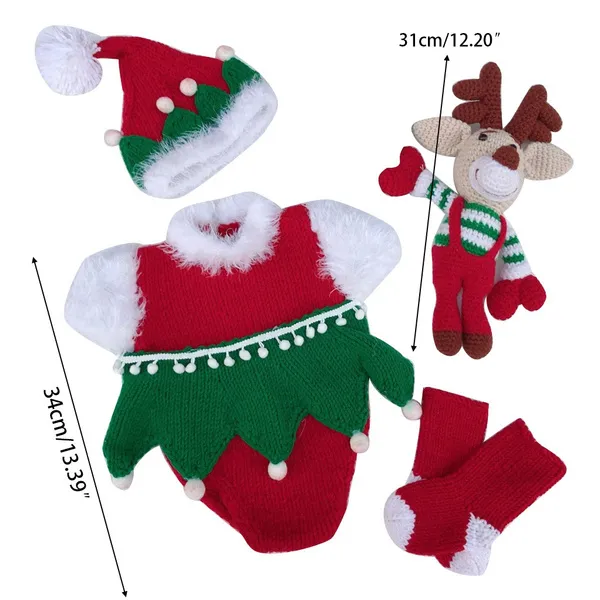 100% brand new and high quality Features: The perfect baby photography set. Made from high quality acrylic fibers material which is breathable and comfortable.Ensuring a comfortable photography shooting and daily wearing in special party. This set includes a hat, a romper , a elk doll and one pair socks. Light and beautiful, it is easy to help your baby pose. Practical, very soft and elastic. You can use it to make your baby cute and beautiful, perfect for photography. The best choice for baby birthdays, parties, photography or everyday wear. Perfect Outfits for Memorable Photography Shoots, Christmas Baby Outfit, Halloween Baby Outfit. Nice Choice For Baby's Christmas Gift . Best Present for Your Babies , for Your Relative's Newborn Babies , Sweet and Special Gift for Your Friends' Baby ,Sweet&Special Gift for Your Colleague's Baby . Hat, Romper, Elk Doll and Socks only,other accessories demo in the picture is not included! Specification: Material: Acrylic Fibers Clothes Length: app.34cm/13.39in Elk Length: app.31cm/12.20in Color: Green + Red Optional Style: 1, 6, 9 Quantity: 1 Set Note: No retail package. Please allow 0-1cm error due to manual measurement. pls make sure you do not mind before you bid. Due to the difference between different monitors, the picture may not reflect the actual color of the item. Thank you! Package Contents: 1 x Baby Hat 1 x Baby Romper 2 x Baby Socks 1 x Elk Doll