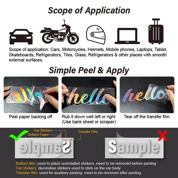 Product Name: Car Body Sticker Material: PET Type: Car Sticker Fitment: Universal For Car body decoration. Features: -Waterproof, sunscreen, environmentally friendly materials. -Self-adhesive, easy to reposition and install. -Easy to remove without leaving sticky residue. -Decorate your car nicely to make it look very cool. -You can freely decorate your car. Package Incldues: Car Body Stickers Installation: 1. Clean paste position; 2. Move away the bottom paper on the back; (With the back side facing up, slowly remove the backing paper. Note: It’s very important that the back side is facing up.) 3. Confirm the position and fix the small corner on one side 4. Use bank sheet or scraper well left or right scrape stickers leveling bubble; 5. Move away the transfer film carefully; 6. Finish. Don't wash your car in 48 Hours. Instruction: Car Sticker Is Made By Three Parts: Transfer Film, Sticker And Base Film. Please Clean The Surface Of The Target Area Before Stick It On. Ensure The Target Area Not Waxed And Polished Before You Stick It. Stick It On And Keep Your Car Non-washed Within 48 Hours To Achieve The Best Adhesiveness. Try To Finish The Steps One Time, Do Not Peel It Off From One Area And Stick On Another Area To Avoid Bad Adhesiveness. Note: 1.Please allow 0.5-1 inch difference due to manual measurement.(1inch=2.54cm). 2.The color of the actual items may slightly different from the listing images due to different computer screen, thanks for your understanding. 3.There are no instructions included in this kit.If you want to know how to use or install it,please contact us by Email.We will provide help as much as possible.