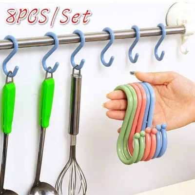 8 PCS/Set Multifunctional plastic S-shaped door hook kitchen hooks creative bathroom nail hooks wardrobe clothes S hooks