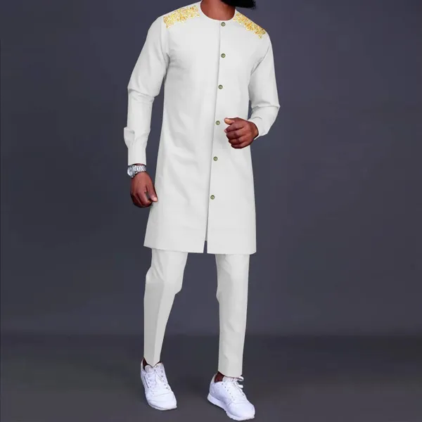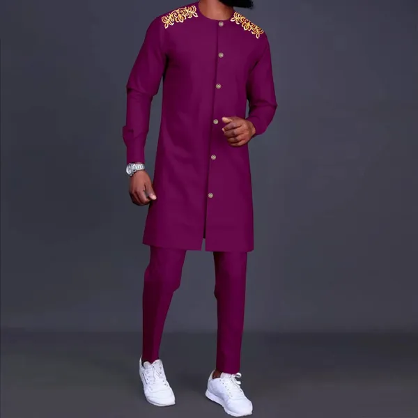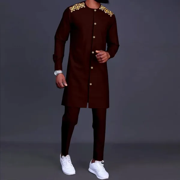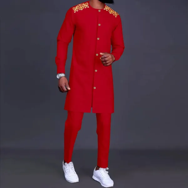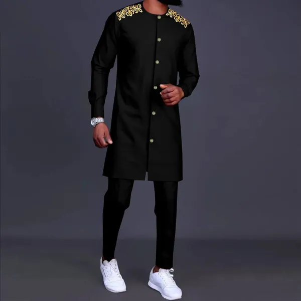 African Men Clothing Traditional Set Embroidery Single Breasted Jacket and Pants 2 Pieces Set Blazer Dashiki Outfits