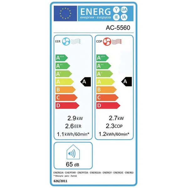 If you are looking for a flexible air cooling option for your family, this AC-5560 air conditioner from Tristar with a cooling capacity of 10,000 BTU is the right choice. This mobile air conditioner is specially designed for home use. Thanks to its compact design with castors, the device is mobile and easy to move. The air conditioner has four operating modes: cooling, heating, dehumidifying and ventilating. It has 2 selectable fan speeds, whereby the desired temperature can be set precisely. This air conditioning system is suitable for rooms up to 90 m³. Color white Material: Plastic Dimensions: 36.4 x 32 x 79.4 cm (L x W x H) Voltage: 220 - 240 V ~ Power: 1040 W. Cooling capacity: 2.9 kWh (10000 BTU) Heating capacity: 2.7 kWh EER: 2.6 W. COP: 2.3 Air flow: 380 m³ / h Dehumidification capacity: 1.2 L / h Water tank volume: 0.45 L. 4 operating modes: cooling, heating, dehumidifying, ventilation Cooling and heating 2 selectable ventilation speeds Adjustable temperature Display when the water tank is full Digital control panel remote control Digital timer Hose: 1.5 m Suitable for rooms: Energy class: A Noise level: 65 db Refrigerant: R410a, 320 g