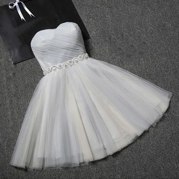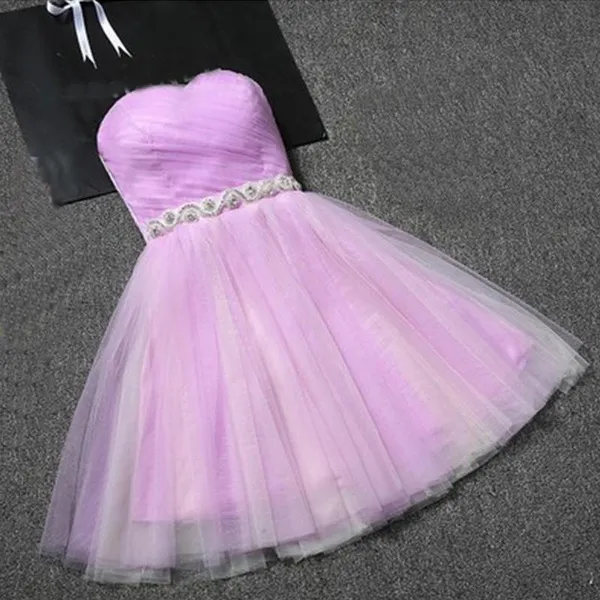 Actual Images : Yes Neckline : Sweetheart Train : NONE Dresses Length : Knee-Length Material : Satin Silhouette : A-Line Occasion : Formal Evening Item Type : Evening Dresses Decoration : Lace Decoration : Ruched Decoration : Tiered Sleeve Style : Cap Sleeve Sleeve Length(cm) : Sleeveless Model Number : D8 Fabric Type : Tulle Built-in Bra : Yes is_customized : Yes Fashion Element : Candy Color Waistline : empire Backstyle : Lace Up Belt : Beads Belt Occasion : Bridesmaid ,Wedding, Graduation,Party ,Prom Daily : Yes