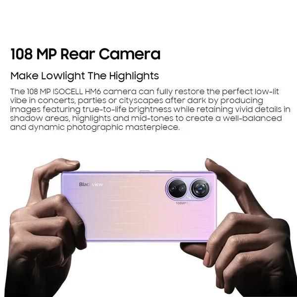 Rear Camera : 108MP(Samsung@ISOCELL HM6)+117°Ultra-wide 8MP+2MP UItra-Macro