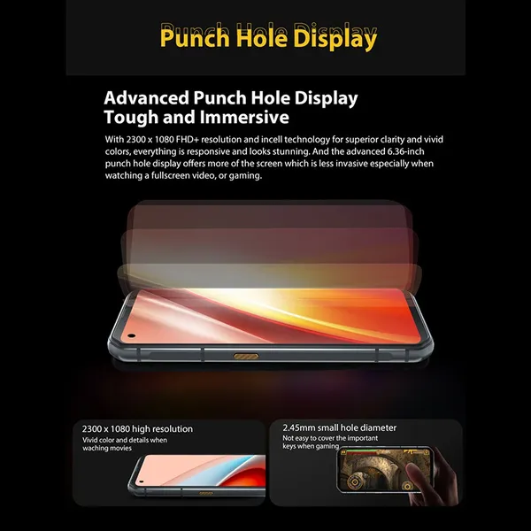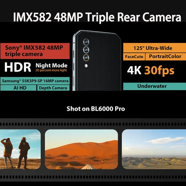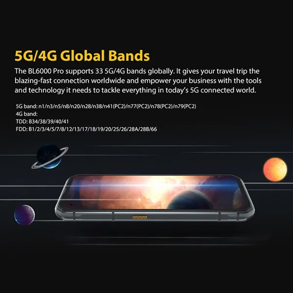 Brand Name: BLACKVIEW Battery Type: Not Detachable ROM: 256G Origin: CN(Origin) Item Condition: New Operation System: Android Biometrics Technology: Side-mounted Biometrics Technology: Face Recognition Front Camera Quantity: 1 Rear Camera Pixel: 48MP Battery Capacity(mAh): 5280 Fast Charging: Adaptive Fast Charge Language: english Language: Russian Language: German Language: French Language: Spanish Language: POLISH Language: Portuguese Language: Italian Language: Turkish Language: Norwegian Language: Korean Language: Japanese Language: Arabic Display Resolution: 1080x2280 RAM: 8G Rear Camera Quantity: 3 Certification: CE Charging Interface Type: TYPE-C Front Camera Pixel: 16MP Wireless Charging: YES Design: BAR SIM Card Quantity: 2 SIM Card Display Size: 6.35'' 3.5mm Headphone Port: no Screen Type: Other Cellular: GSM Cellular: CDMA Cellular: WCDMA Cellular: LTE Cellular: 5G CPU Model: MTK MTK Model: Dimensity 800 MT6873 Standby Time: Other Bluetooth Version: Bluetooth 5.1 Wi-Fi Transmission Standard: 802.11n 2.4GHz/5 GHz NFC: YES Memory Card Type: Shared with SIM slot Optical Zoom: 2x Display size range: Middle (6-6.49") Screen Material: LCD Main Rear Camera Sensor: SONY IMX582 CPU Core Quantity: Octa Core Type: 6.36-inch FHD+ Punch Hole Display Package: 1 x Blackview BL6000 Pro 1 x Charging Cable 1 x Power Adapter(EU) 1 x User Manual