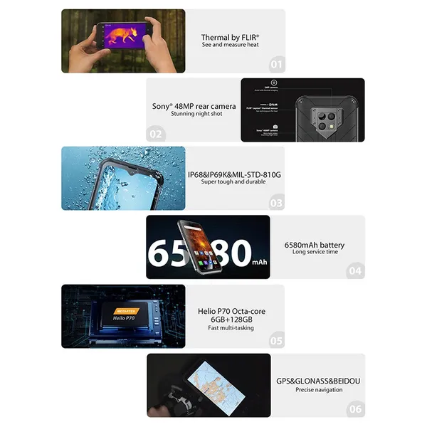 Brand Name: BLACKVIEW Model: BV9800 Pro Battery Type: Not Detachable ROM: 128G Origin: CN(Origin) Item Condition: New Operation System: Android Biometrics Technology: NO Standby Time: other Front Camera Quantity: 1 Rear Camera Pixel: 48MP Battery Capacity(mAh): 6580 Fast Charging: Nonsupport Phone Type: Smart Phones Touch Screen Type: Capacitive Screen Language: English/Russian/German/French/Spanish/POLISH/Portuguese/Italian/Turkishrwegian/Korean/Japanese/Arabic Optical Zoom: 4x Display Resolution: 1080x2340 Rear Camera Quantity: 4 Charging Interface Type: TYPE-C Front Camera Pixel: 8MP Wireless Charging: YES Design: BAR SIM Card Quantity: 2 SIM Card Display Size: 6.3 3.5mm Headphone Port: YES Screen Type: Water Drop Screen Cellular: LTE Display Proportions: 18:9 CPU Model: MTK NFC: YES RAM: 6G Unlock Phones: Yes Screen Material: LCD Main Rear Camera Sensor: other CPU Core Quantity: Octa Core Release Date: 2019 Function: FM, GPS, BEIDOU Earphone type: 3.5mm jack Rear Camera: 48MP+5MP Front Camera: 16MP GSM: 850/900/1800/1900 (B2/B3/B5/B8) WCDMA: B1/B2/B4/B5/B6/B8/B19 TDSCDMA: B34/B39 FDD: B1/B2/B3/B4/B5/B6/B7/B8/B12/B13/B17/B18/B19/B20/B25/B26/B28A/B28B/B66 TDD spec: B34/B38/B39/B40/B41 C2K: BC0/BC1 Feature: Thermal imaging Smartphone Package: 1 x Blackview BV9800 Pro 1 x USB Cable 1 x Power Adapter(EU) 1 x Screen Film 1 x Earphone 1 x User Manual