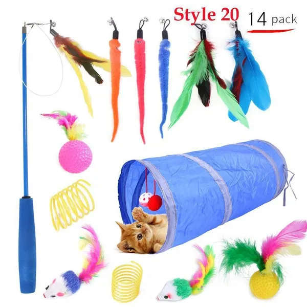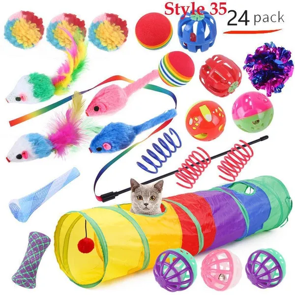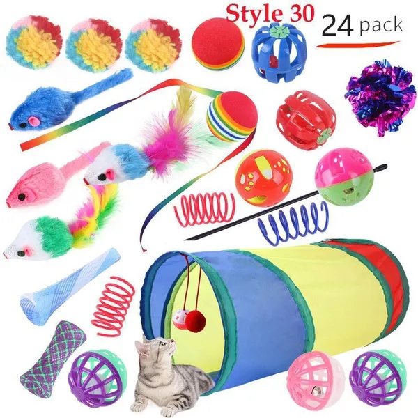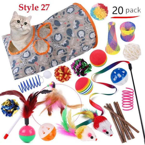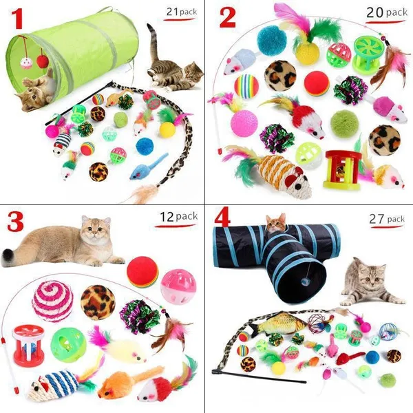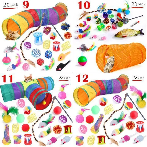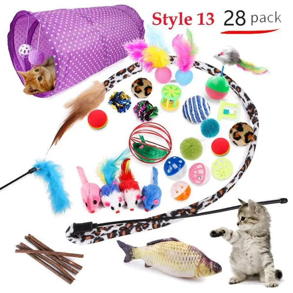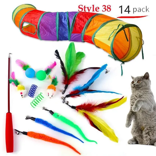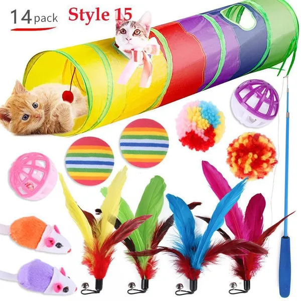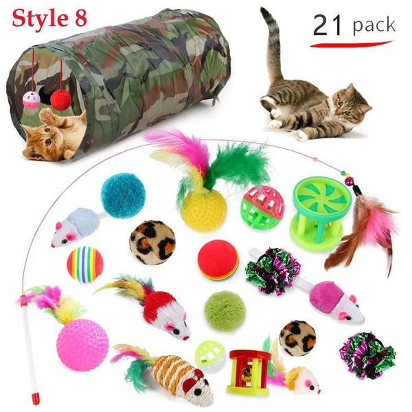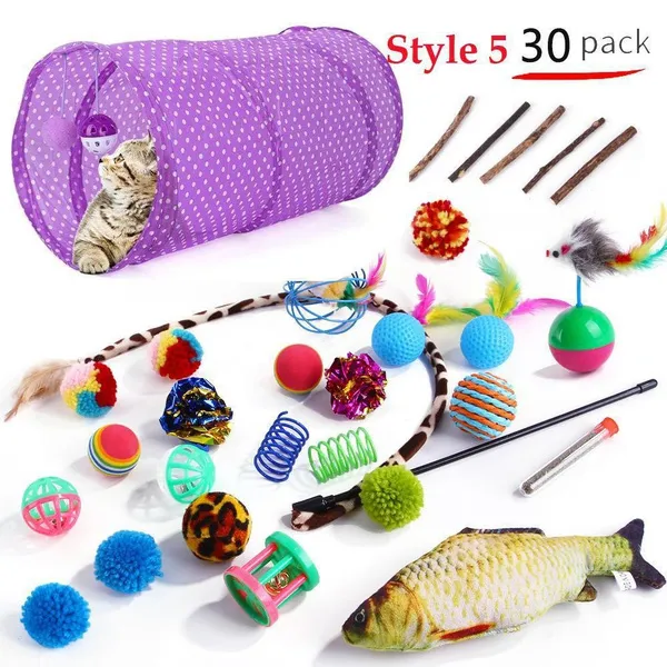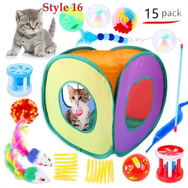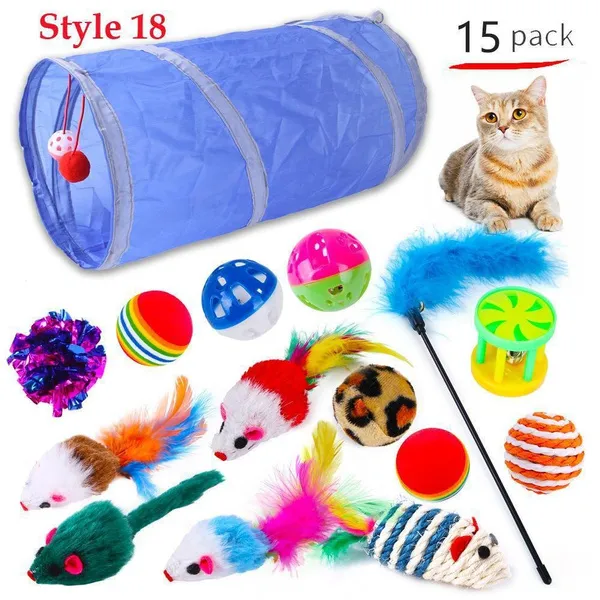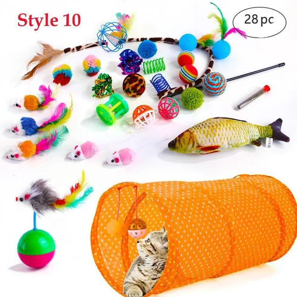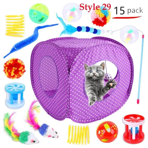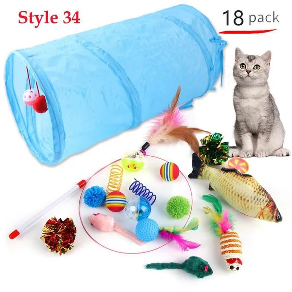 Cat Pets Toys Mouse Shape Balls Foldable Cat Kitten Play Tunnel Funny Cat Stick Mouse Supplies Simulation Fish Cat Accessories