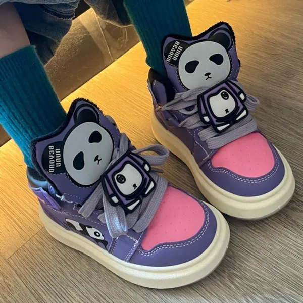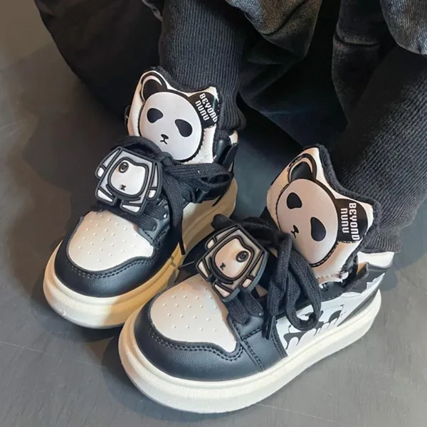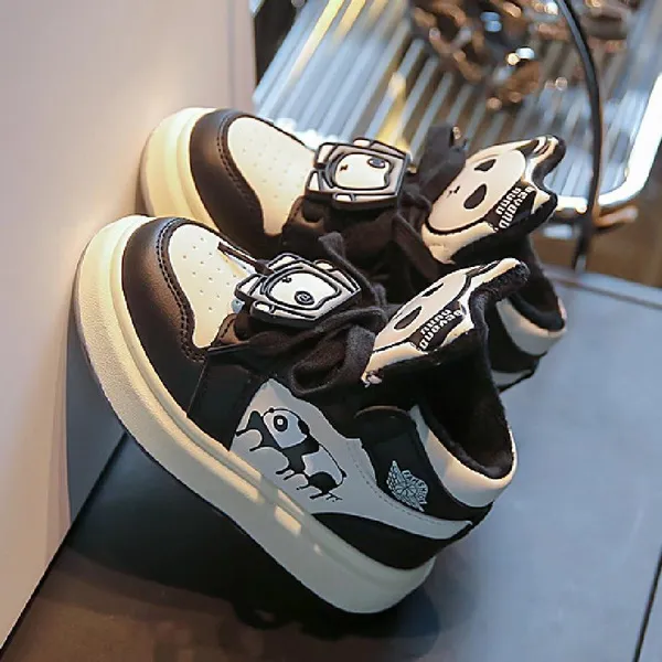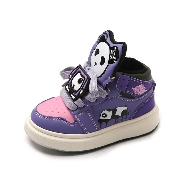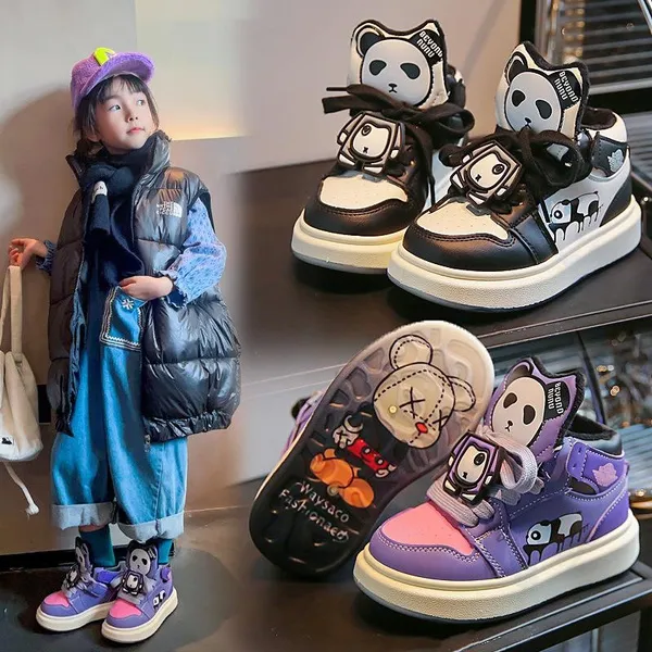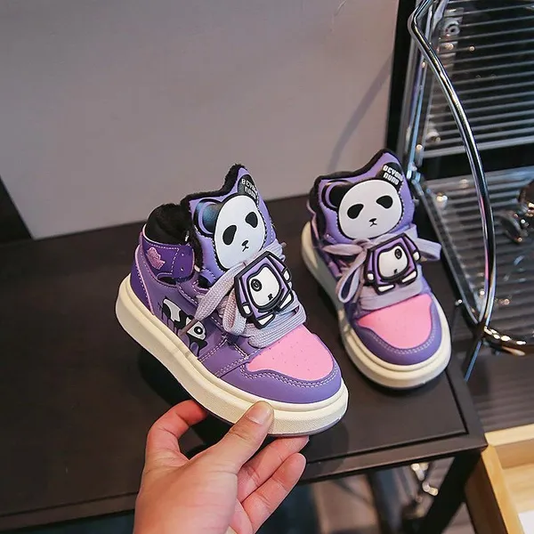 Welcome to visit our shop! We provide novel, interesting, beautiful, bargain, high-quality and fashionable goods.If you want more different goods, please visist our store from store ratings page. It's time to upgrade your shoes closet ! 100% Brand New Color: Purple, black Size:.26~37 Applicable age: 4~16Y Upper material: EVA Function: Light and wear-resistant Design: Panda Sole material: rubber Gender applicable: unisex Product Category: Basketball Shoes Package includes: A pair of Children Sport Shoes