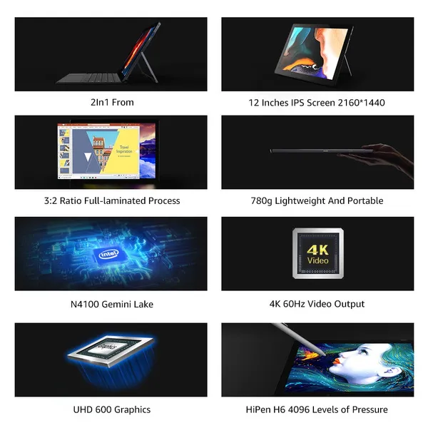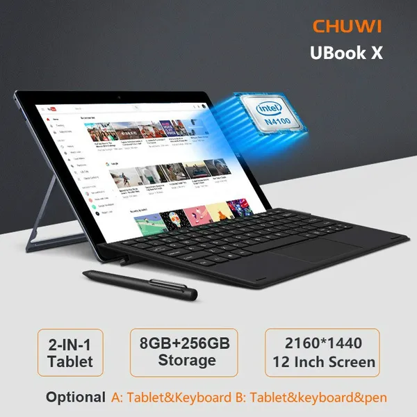 CHUWI UBook X 12 Inch 2160*1440 IPS Screen Intel N4100 Processor UHD Graphics 600 8GB RAM 256GB SSD Windows10 Tablet PC