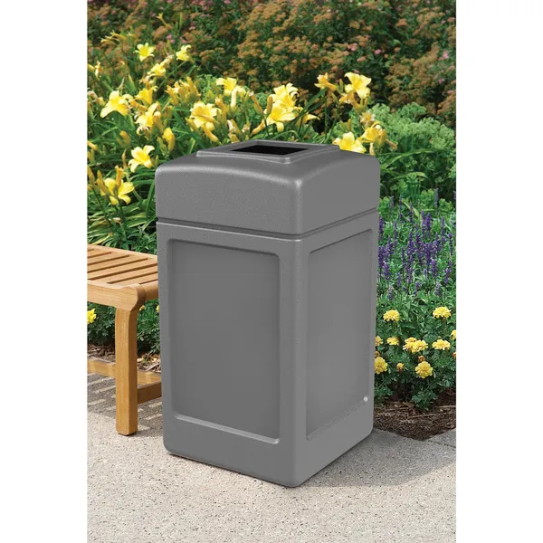 Keep your outdoor living area neat and clean with no waste, trash, or other litter. The Commercial Zone Open-Top Square Waste Trash Container is the perfect outdoor garbage solution for any business or backyard. Crafted from environmentally-friendly recycled material, this bin won't rust, dent, or chip. The material is easy to maintain and clean, saving you time and hassle. The durable, heavy-duty construction is built to last in the harshest weather conditions. The compact design offers a convenient square style that makes it ideal for entrances and designated outdoor living areas. Equipped with a patented Grab Bag system, you never have to worry about the internal trash bag slipping out of the bin. The snap-lock lid feature secures the lid to base without the use of hardware for easy maintenance so the Commercial Zone Open-Top Square 42-Gallon Waste Trash Container lasts for years to come.