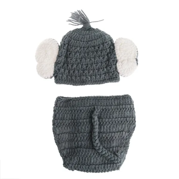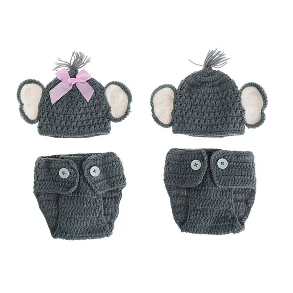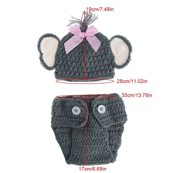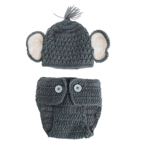 Crochet Baby Elephant Costume Knitted Baby Hat and Diaper Pants Set Newborn Baby Animal Photography Props XUF