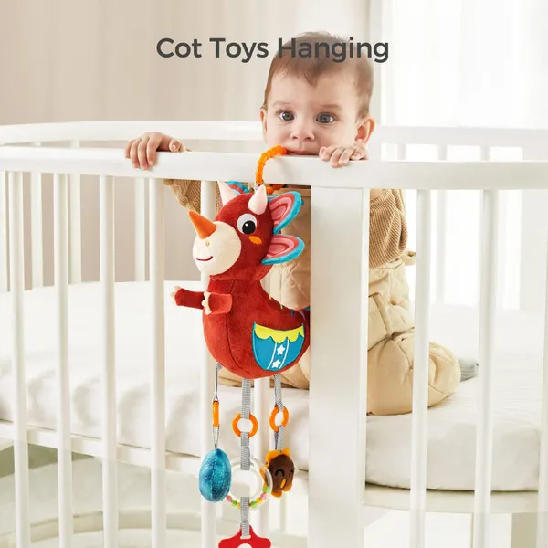 【Hanging Stroller Rattle Toy】- Dinosaur Stroller Car Seat toy has a built-in wind chime and crinkles.It can shake to ring sound,or squeeze “bi-bi” soundIt,and help to promote your babies auditory senses as well as muscle and grab ability. The tummy mirror attract baby to focus on a human face,preferred from birth. 【Safe and Soft Plush Toy】- This Plush Baby Rattle Toy is made of plastic ring hook+short plush, colorful, soft and skin-friendly fabrics, safety and non-toxic material, the mirror is made of acrylic. Mirror resistant and 180 degree bend without crease. No harm for babies, infants can play without worrying about contact with toys to hurt them. Recommend hand washing. 【Stimulate Visual】Lovely plush dinosaur rattle with individual animal characters,high contrast colors,Lots of different textures to give baby maximum sensory experience,every car seat hanging toys can attract baby's attention easily and stimulate their visual development and develop baby's hand-eyes coordination. Encourages reaching and grasping. 【Car Seat Toys for Infants】- This toddler toy comes with a ring hook, which can be clipped to a stroller, car seat or crib, stroller toy, baby car seat toy, baby gym suspension toy, it is very easy to hang or remove. 【Gift for Newborn Toy】- This cute animal activity toy for newborn babies is perfect for newborn babies or baby boys or girls. Very meaningful and decent. 0-12 month old toys for babies, can be used as gifts for New Year, gifts, Christmas or Children's Day.