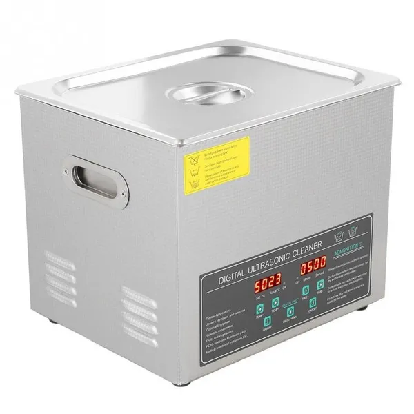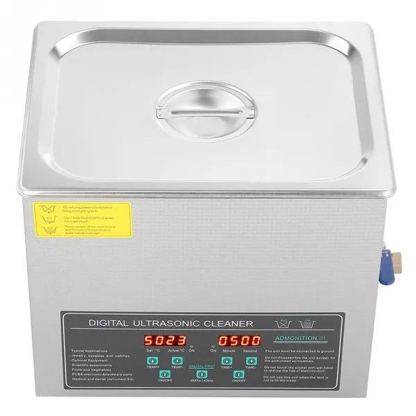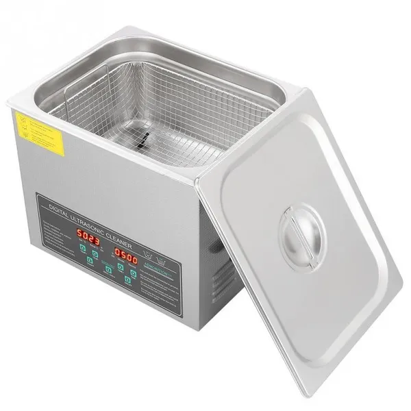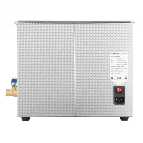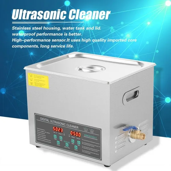 Features: Digital timer control is easy to use, 0-99 minutes, standby and suspend mode. Double-frequency ultrasonic power, 28 kHz is used for overall clean, 40 kHz for precise clean. It uses consistent process control of digital temperature control, environmental temperature is 99℃. LED display is used for temperature and timer. Temperature setting: 20 to 80 ℃ digital constant temperature setting Stainless steel housing, water tank and lid. groove has no welding gaps, the waterproof performance is better. High-performance sensor. It uses high quality imported core components, long service life. Direct tap water, or industrial alcohol and solvent cleaner, in order to meet the higher cleaning requirements. Large capacity, high power heating and ultrasonic cleaning power, more efficient cleaning. Save the cleaning solvent, heat energy, workplace and labor. Specification: Capacity :10L Ultrasonic Power :240W Heating Power :300W Clean Tank Size :300*240*150 Machine Outer Size :330*270*270 Plug Type: US,EU,UK,AU Plug Voltage: 110V~240V Frequency: 40 kHz Timer: 0~99 minutes Temperature: 20~80℃ Weight: 7750g / 273.4oz (approx.) Note: Heating is only an auxiliary function, which may need a long time.Usually it is enough when the heating temperature is over 20℃ . Package list: 1 * Ultrasonic Cleaning Machine 1 * Lid 1 * Basket 1 * Power Cable 1 * User Manual Application: 1. Family application: Daily cleaning and killing bacteria can also be used for hand beauty treatment, long-term use can keep skin young. 2. and optical instruments: All optical lenses, such as glasses (including contact lenses) ,magnifying glasses, telescopes, microscopes, cameras, etc. 3. Jade, jewelry processing industry: In the process of grinding and polishing, a large amount of dust will adhere to the jade, decorations.And these objects often has complicated shape, therefore traditional cleaning methods are often helpless. 4. Watches and instruments: Only take apart the housing, the cleaning tank is filled with corresponding detergents (such as gasoline), can achieve clean effect, only half the effort can get twice the result. Banks, offices, financial, office supplies, crafts, advertising. e.g. printers, water pens, brushes, sprayers. 6. Industrial communication equipment, electrical maintenance: Cell phones, walkie-talkie, and other circuit boards, spare electrical parts. 7. Medical institutions, colleges and universities All kinds of medical and instruments, such as surgical instruments, dental teeth, dental wax, sight glasses, beaker test tube cleaning lab, etc.
