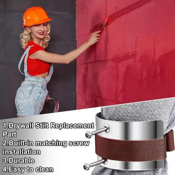 Make Home Improvements Easier: the drywall stilts parts will allow you to walk easily as if walking on the ground, so that you can walk to the positions or corners you want, no need for a ladder or other tools Reliable to Use: the drywall stilt leg cuffs are made of metal mainly, and the leg band is made of braided canvas with alloy buckle, providing complete security, you can use the accessories confidently Widely Suitable: the stilt accessories are designed for most drywall stilts, you can easily fix the replacement part and leg strap on your drywall stilt and start home decoration, effortlessly and simply Bring You Comfortable Experience: the drywall stilt comfort kit is padded with foam inside, which will reduce the friction between your knee and the metal part, allowing you to have a nice experience during the process Easy to Adjust: the drywall stilt accessories are equipped with 2 screws, which is for you to adjust the tightness, you can choose to use the screws or not according to your actual knee size Features: Convenient to decorate: With the drywall stilts parts, you don't have to come down from the ladder frequently, which saves you time and enables you to finish indoor wall painting more quickly. Home necessities The drywall stilt leg cuffs are useful enough, necessary for those who need to repair or decorate the wall. Specifications: Material: Drywall stilt replacement part: metal and foam Leg strap: canvas with alloy Color and size: as pictures show Package includes: 1 x Drywall stilt replacement part with 2 screws 1 x Leg strap Notes: Manual measurement, please allow slight errors on size. The color may exist a slight difference due to different screen displays.