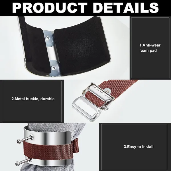 Make Home Improvements Easier: the drywall stilts parts will allow you to walk easily as if walking on the ground, so that you can walk to the positions or corners you want, no need for a ladder or other tools Reliable to Use: the drywall stilt leg cuffs are made of metal mainly, and the leg band is made of braided canvas with alloy buckle, providing complete security, you can use the accessories confidently Widely Suitable: the stilt accessories are designed for most drywall stilts, you can easily fix the replacement part and leg strap on your drywall stilt and start home decoration, effortlessly and simply Bring You Comfortable Experience: the drywall stilt comfort kit is padded with foam inside, which will reduce the friction between your knee and the metal part, allowing you to have a nice experience during the process Easy to Adjust: the drywall stilt accessories are equipped with 2 screws, which is for you to adjust the tightness, you can choose to use the screws or not according to your actual knee size Features: Convenient to decorate: With the drywall stilts parts, you don't have to come down from the ladder frequently, which saves you time and enables you to finish indoor wall painting more quickly. Home necessities The drywall stilt leg cuffs are useful enough, necessary for those who need to repair or decorate the wall. Specifications: Material: Drywall stilt replacement part: metal and foam Leg strap: canvas with alloy Color and size: as pictures show Package includes: 1 x Drywall stilt replacement part with 2 screws 1 x Leg strap Notes: Manual measurement, please allow slight errors on size. The color may exist a slight difference due to different screen displays.