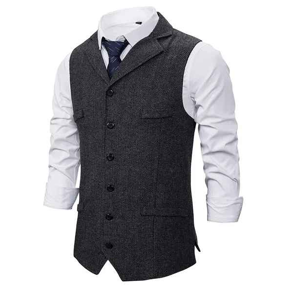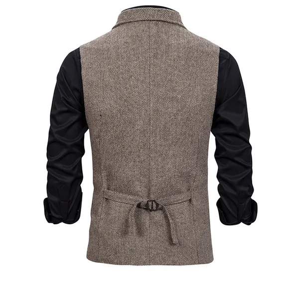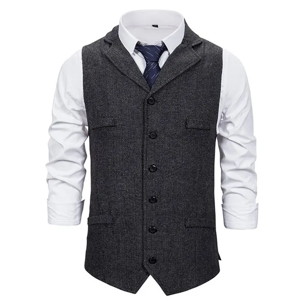 ens vintage suit waistcoat features: Style: Work Color: Khaki,Dark Grey,Black Pattern Type: Plain Neckline: Lapel Length: Regular Type: Vest Details: Button Front Placket: Single Breasted Sleeve Length: Sleeveless Season: Spring/Fall Composition: 95% Polyester, 5% Spandex Material: Polyester Fabric: Non-Stretch Sheer: No Fit Type: Regular Fit Lining: Yes