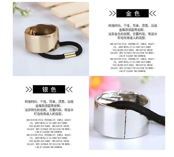 Fashion New Golden Metallic Cylinder Circle Women Hair Accessories