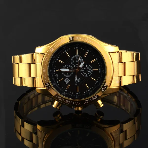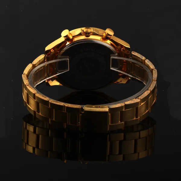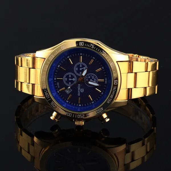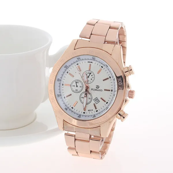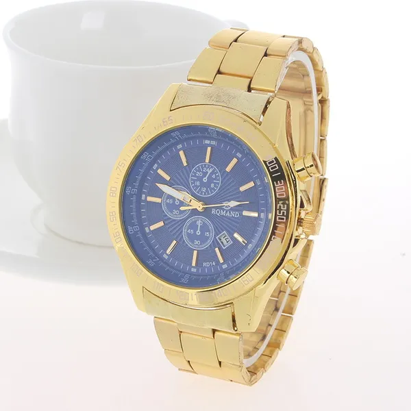 Special features: Calendar Display Type: Pointer The crowd: Male Style: Business Waterproof: No Movement Type: Quartz Thickness: 12mm Dial diameter: 43mm Crown type: Screw crown Bottom of the table type: Ordinary glass mirror mirror material Table debit-style single-folding buckle Stainless steel clasp Stainless steel strap Dial Shape Round Case material metal Gold color with blue face, with black gold surface with flour gold, silver with blue face, silver with black face, silver with flour, rose gold with a blue face, rose gold with black faces, with flour rose gold Product categories Watches Shell Material Stainless steel The watch has nine kinds of styles available! Dial three colors: blue, black, white Band 3 colors: gold, silver, rose gold
