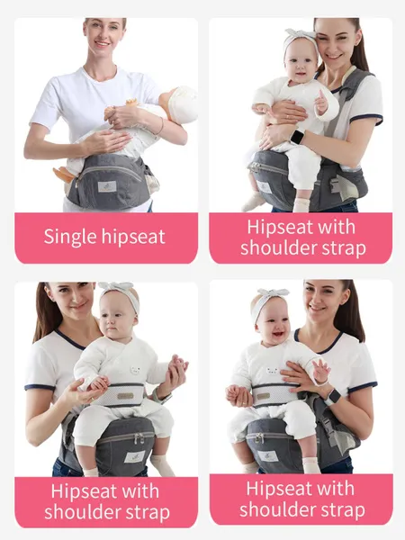 Gabesy Baby Hip Carrier-Hip Carrier for Baby, Ergonomic Baby Carrier with Hip Seat, Baby Hip Seat Carrier with Adjustable Waistband & Multiple Pockets, Hip Carrier for Toddlers & Newborns up to 45lbs About this item [Premium Materials for Durability] The packaging includes a baby waist carrier, a shoulder strap, and a safety belt. This product weighs about 1.3 pounds and is suitable for babies aged 0-36 months with a weight range of 8-33 pounds. Crafted with premium materials, our waist stool features cationic fabric for the exterior, ensuring durability and style. The interior is lined with 3D breathable mesh fabric, keeping your baby comfortable during extended wear. [Ultimate Comfort Designed] Our baby hip seat carrier is meticulously designed to ensure comfort for both you and your infant. While the carrier can be used on its own, wearing the shoulder strap will make it even easier for you. The shoulder strap evenly distributes your baby's weight across your shoulder, waist, and abdomen, reducing the pressure and fatigue on your body. The carrier features a 5.3 inches wide waist belt and thick sponge padding, effectively distributing the load to the waist. [Safety and Ergonomically Designed] Your baby's safety is our top priority. The anti-fall safety belt is designed to secure your toddler in place, wrapping snugly around their abdomen to prevent any accidental falls. The waist stool is ergonomically designed. The seat is angled with 30 degrees, providing a more comfortable seating experience. The core of the stool is lightweight, conforming to your baby's natural sitting posture. The seat is also thickened and ensure a non-slip surface. [Multiple Carrying Positions and Optional Extender] Choose from three different carrying positions: front-facing, parent-facing, and cross hold. Find the most comfortable and natural position for both you and your baby. The waist belt that comes with the carrier is suitable for waist sizes ranging from 25 to 43 inches. For those with larger waist sizes, there's an optional waistband extender available for purchase, extending the belt's length by approximately 20 inches. [Convenience with Added Features] Our waist stool includes a spacious zippered storage pocket and a bottle pocket, perfect for carrying essentials like diapers, wipes, or your phone. The reflective strips on the front enhance visibility during nighttime outings, providing added safety. The waist carrier is equipped with durable and secure mountain-climbing-grade buckles, as well as Velcro that has a smooth surface with strong adhesion. The added storage loop keeps excess straps tidy and neat.