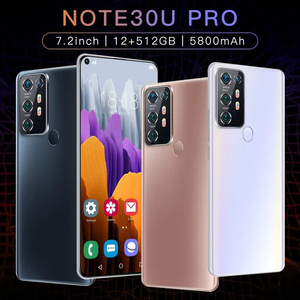 Factory direct sales, better quality but lower price is our target and mission! Note: It is not compatible with Sprint and Verizon operators! Feature; - 7.2inch digging curved screen The Note30UPro delivers the viewing experience you always wanted, With a massive 93% screen-to-body ratio on a 6.8inch screen. - 18MP Front Camera Clear and Stylish Selfie The Note30UPro world-leading 18MP front camera turns your every selfie into a work of art experience greater brightness, color vibrancy, clarity and dynamic range. Even in the dimmest light, whenever you need it, your Note30UPro is right there with you, capturing every moment with crystal-clear precision, Turn your selfies into masterpieces and shine in every photo. - Rear HD camera The Note30UPro features a 48MP camera combination. The main camera sports a large f/1.8 aperture and 1.28um pixels, This strong combination boosts photo-sensitivity in backlight or low light, Just point and shoot, and Note30UPro will make sure your pictures remain clear and bright. - Face Access The Note30UPro also supports facial recognition upon activation, Note30UPro scans your facial features and unlocks instantaneously accessing your phone has never been so easy, or so fun. -Fingerprint unlock The phone supports true fingerprint unlocking, protects your personal privacy, supports fingerprint photography, and makes your entertainment more fun. - Powerful Performance The MTK6889 mobile platform with 10mm process technology makes young people who love the young and other popular games. The game is on and lower. - Android 10.0 The new interactive design makes the operation simple and simple, the use of the mobile phone is so simple and straightforward, everything is handy. - Dual SIM card supports TF card Dual card dual standby, card slot does not distinguish between the main and the deputy, supporting the worlds 50 major communication carrier networks Specification: 1.Model No.:Note30UPro 2.Platform : MTK6889, Deca Core (Latest 10 Core) 3.Standby: Dual sim dual standby (A slot support SIM card, another slot support SIM card or TF card) 4.Screen: 7.2 HD+ Full Display 1440*3088 5.Speaker: 1511 Box Speaker 6.Frequency: GSM850/900/1800/1900MHz, 3G: WCDMA850/1900/2100MHz,4G LTE,5G 7.Vibration: Support 8.Colors: Matt black/Matt white/Matte blue 9.Memory: 12GB RAM+512GB ROM 10.Multi Media: MP3/MP4/3GP/FM Radio/Bluetooth 11.Camera: 18MP+48MP 12.Multi Function: Full screen, Face recognition, Dual SIM, Wi-Fi, GPS, Gravity Sensor, Alarm ,Calendar ,Calculator ,Audio recorder ,Video recorder, WAP/MMS/GPR, Image viewer,E-Book,World clock,Tasks card rear flash IML rear cover 13.Languages: Muti-language support 14.Others: Android OS 10.0 System 15.Battery: 5000mAh Lithium-ion battery 16.Type-C plug 17.Ultra unibody Attention: Due to the difference in light, the actual color of the phone may be slightly different from the screen and the picture. Color names are only used to distinguish between individual SKUs. Please understand that. Thank you. The battery capacity is typical of the factory laboratory, the specific charging speed, the length of use and other data, the actual situation will be slightly different due to the power cord, power adapter, ambient temperature. When the phone is completely out of power and automatically shuts down, you need to charge your phone for more than 10 minutes to boot. It is recommended to charge when the battery is less than 20% charged. Available memory capacity is subject to preloaded software Product images and models, data, functions, performance, specifications, etc. are for reference only. We may improve the above contents. For details, please refer to the product and product description. Unless otherwise stated, the data contained in this website are our internal test results, and the comparisons are compared with our products. The mobile phone does not support the Telecom CDMA 2G 3G network. (For example US Sprint and Verizon operators) Package Included: 1 x Smartphone, 1 x Charger Adapter, 1 x Headphones, 1 x User Manual, 1 x phone case, 1 x Protection filmFeature: - 7.2inch Full Display The Phone delivers the viewingexperience you always wanted, With a massive 90.3%screen-to-body ratio on a 7.2inch screen - 16MP Front CameraClear and Stylish Selfies The Phone world-leading 16MP front camera turnsyour every selfe into a work of art Experience greaterbrightness, color vibrancy, clarity and dynamic range.even in the dimmest light, Whenever you needit. your Phone is right there with you, capturing everymoment with crystal-clear precision, Turn your selfiesinto masterpieces and shine in every photo - Rear HD camera The Phone features a 32MP camera combination. The main camera sportsa large f/1.8 aperture and 1.28um pixels, This strong combination boosts photosensitibityin backlight or low light, Just point and shoot, and Phone will makesure your pictures remain clear and bright - Powerful Performance The MTK6899 mobile platform with 7mm process technology makesyoung people who love the young and stiand other popular games.The game ison and lower - Android 10.0 The new interactive design makes the operation simple and simple, the use of themobile phone is so simple and straightforward, everything is handy - Dual SIM card + TF card Dual card dual standby, card slot does notdistinguish between the main and the deputy, supporting the worlds 50 major communication carrier networks Specification:Factory direct sales, better quality but lower price is our target and mission! CPU: MTK6899 Deca Core (Latest 10 Core) SIM/TF: 2 SIM Card Slots (Nano SIM) + 1 TF Card Slots (Maximum support extension 256GB) Screen: 7.2 Inch 2K Screen Resolution :1440*3200 Camera: Front Camera 16MP+ Rear Camera 32MP Memory: 12GB RAM+128GB/256GB/512GB ROM System: Android 10.0 System Battery: 5000mAh High Density Lithium-ion battery Unique Back Cover: Hot Bend 3D Plating Gradient Glass Back Cover. It is art, it is also technology! Net-Work: GSM850/900/1800/1900MHz, 3G: 