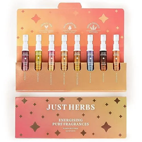 Just Herbs EDP Perfumes Trial Set of 8 x 3ml Long Lasting Pocket Perfume Fragrances for Men and Women (Floral & Citrus)