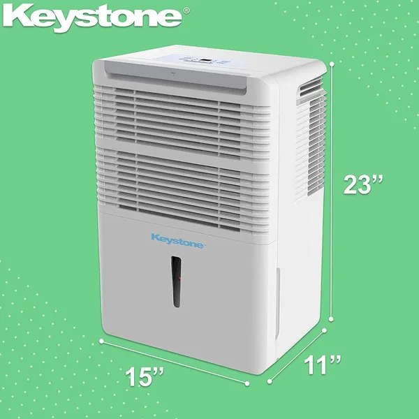 Protect your home from unwanted moisture with this Keystone 35-Pint Portable Dehumidifier. Designed for large rooms up to 3,000 square feet, this innovative home appliance effortlessly removes excess water from the air, leaving you with a musty-free home with consistent fresh air flowing. Live comfortably no matter where you lounge in your home. This powerful dehumidifer effortlessly moves from room-to-room on 4 durable, rolling caster wheels so you can reach maximum comfort in every room in your house. Easy to use, this home appliance features 3 fan settings, electronic controls, an LED display screen, and a 24-hour timer. Taking on all the hard work for you, all you have to do is select your desired setting, sit back, and relax. When the machine needs to be refilled or emptied, the transparent water level indicator and full bucket alert take the guesswork out of the equation. Draw out the warm, moist air from your home with the Keystone Home Dehumidifier and enjoy your own personal cool environment.