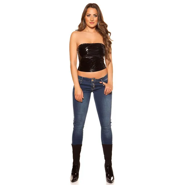 Unleash your inner style with this gorgeous latex look crop top from KouCla. Featuring the full back zipper design, this shiny look crop top will be perfect for any special occasion! Pair with matching latex look trousers and high hills for a lunch date. Colour: Black