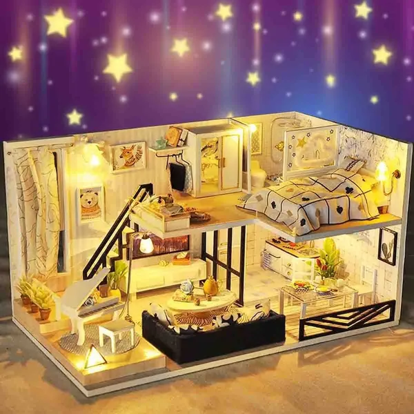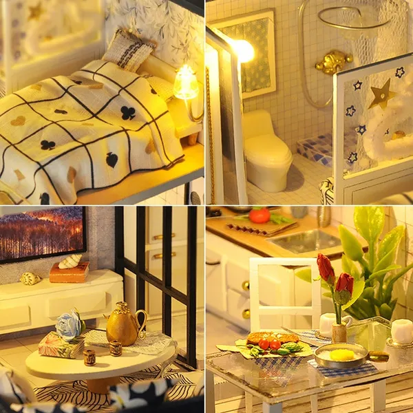 Modern Doll House Miniature DIY Kit Dollhouse with Furniture LED Light Box Gift Material: Wood+Fabric Application: Decorations,Gifts Finished Product Size: 300*170*165mm Features: -DIY handmade by customers, without dust cover. -DIY house is the miniature of real house, cute and beautiful. -Assembly, modelling, placement of it to finish your own house. -It's easy to finish it following the instruction, just need enough patience. -This dollhouse makes a great craft project and gift for both children and collectors. Package included: 1 x DIY Doll House Set (Glue and dust cover are not included) Notes: 1. Manual measuring, please allow 1 ~ 5mm error,thank you. 2. Due to the difference between different monitors, the picture may not reflect the actual color of the item. We guarantee the style is the same as shown in the picture.