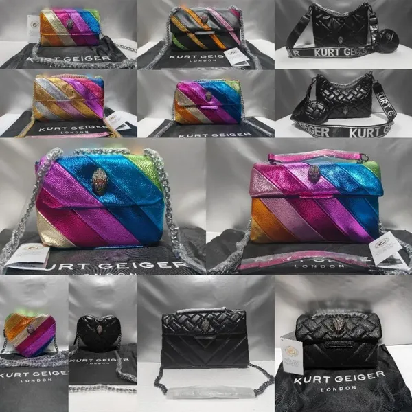 The package includes: 1× bag, 1× dust bag. Color: Rainbow, Black Brand:Kurt Geiger Style: Vintage Materials:PU leather Opening type:Zipper Internal structure: interior compartment Size: 18×7×17 cm Weight: 245g Length of strap: 100cm, adjustable Note: Due to different measurement techniques, some errors are acceptable Feature: New high quality and perfect design at a reasonable prices. This Cute bag is Lightweight, Suitable capacity, Relaxed and Comfortable to Wear. Feature: Beautiful Letters, Good workmanship, Perfect details, Soft fabric, Adjustable Straps, Multi Color Design etc. Pair with variety of jeans, skirts, and shoes for a look that's easy to love Four season long. This beautiful purse perfect for casual, party, beach, club, daily and all year wear.