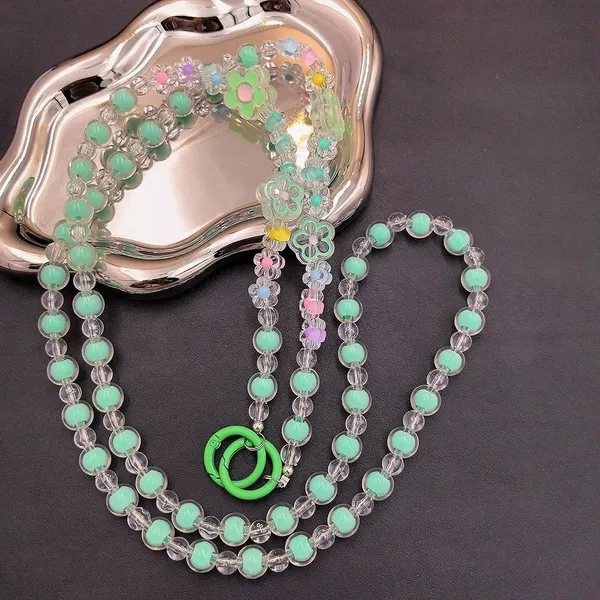 Lovely Multi-flower Mobile Phone Straps Crossbody, Anti-lost Rainbow Color Acrylic Beaded Shoulder Chain Long Mobile Phone Lanyard for Phone Accessories