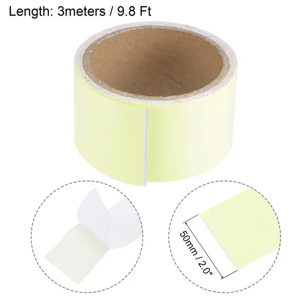 Features: -*1.Naturally illuminate in the dark, no need for electrical energy, energy saving; -*2.Environmental protection, clear warning labels can also beautify the environment; - *3.Also has waterproof, sunscreen, strong corrosion, self-adhesive, etc.; -*4. Non-toxic, tasteless, non-radioactive; easy to construct and simple; - *5.Easy to use; Description: - Marking position: It can be attached to electrical switches, remote control panels, wall switches, plugs, sockets, locks, flashlights, door handles, handrails, fire fighting equipment, fire alarms, rescue equipment, etc. It can mark its location and is easy to use. - Safety signs: safety warnings, such as emergency evacuation routes, subway stations, karaoke bars, dance halls, cinemas, supermarkets, shops, hospitals, stations, airports, terminals, etc. specifications: - Safety: inert and non-toxic - Glue: non-permanent / peelable -color: White - Luminous color: green - Afterglow half-life: about 20 + hours - Luminous material life: about 5 years + - Dimensions (width * length): 20mm * 3m / 30mm * 3m/40mm * 3m/50mm * 3m Package contents: 1 x luminescent tape