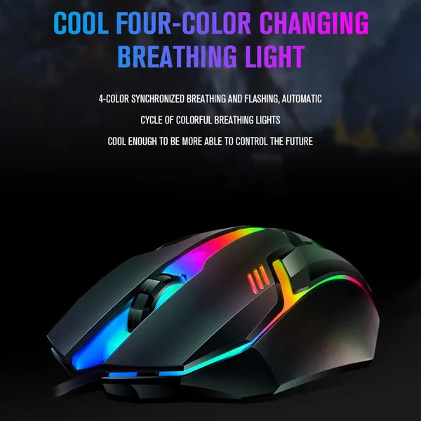 Glowing Gaming Mouse: Breathing light, 4-color synchronized breathing and flashing, automatic,and cycle of colorful breathing lights,ergonomic design. Natural curves of the mouse give you the most comfortable gaming experience ever.