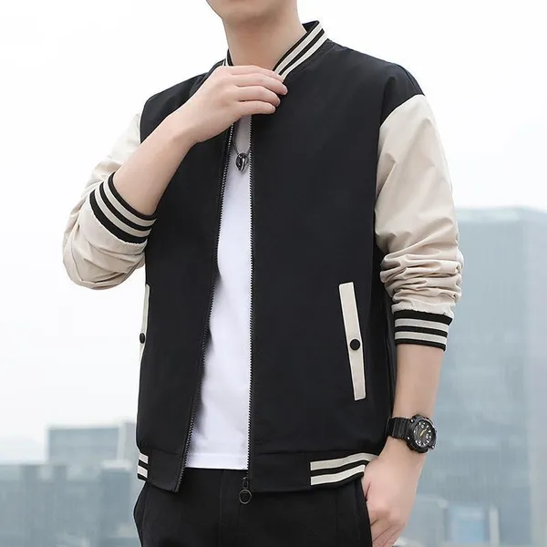Men Casual Jackets Spring Autumn Fashion Men's Patchwork Zip Up Baseball Jackets Men's Bomber Jackets Outerwears 3 Colors