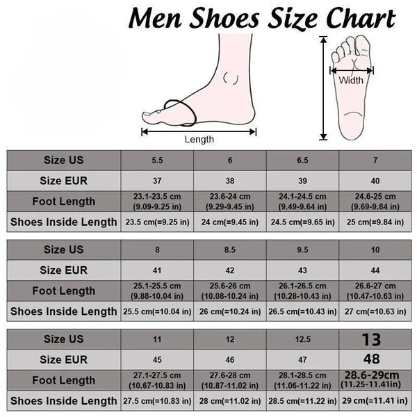 Shoe Type: Casual Shoes Toe Type: Round Toe Closure Type: Slip On Gender: Male Occasion: Casual, Daily Season: Spring, Summer, Autumn, Winter Color: Brown, Camel, Gray Material: Upper Material: Microfiber Leather Outsole Material: Rubber Men Size: Foot Length range Shoes insole Length US EUR 23.1-23.5cm(9.09-9.25in) =23.5cm(=9.25in) =5.5 =37 23.6-24cm(9.29-9.45in) =24cm(=9.45in) =6 =38 24.1-24.5cm(9.49-9.64in) =24.5cm(=9.65in) =6.5 =39 24.6-25cm(9.69-9.84in) =25cm(=9.84in) =7 =40 25.1-25.5cm(9.88-10.04in) =25.5cm(=10.04in) =8 =41 25.6-26 cm(10.08-10.24in) =26cm(=10.24in) =8.5 =42 26.1-26.5cm(10.28-10.43in) =26.5cm(=10.43in) =9.5 =43 26.6-27 cm(10.47-10.63in) =27cm(=10.63in) =10 =44 27.1-27.5cm(10.67-10.83in) =27.5cm(=10.83in) =11 =45 27.6-28cm(10.87-11.02in) =28cm(=11.02in) =12 =46 28.1-28.5cm(11.06-11.22in) =28.5cm(=11.22in) =12.5 =47 28.6-29cm(11.25-11.41in) =29cm(=11.41in) =13 =48 Notice: 1. Due to the different monitor and light effect, the actual color of the item might be slightly different from the color showed on the pictures. 2. Please allow 1-3cm measuring deviation due to manual measurement Package included: 1*pair of shoes(without box)
