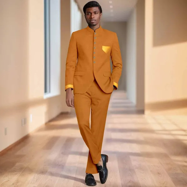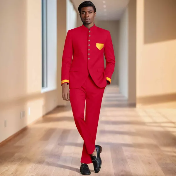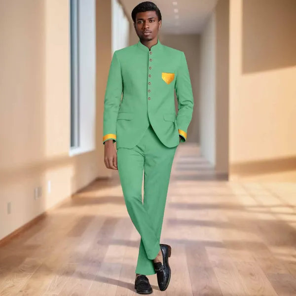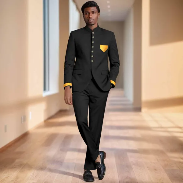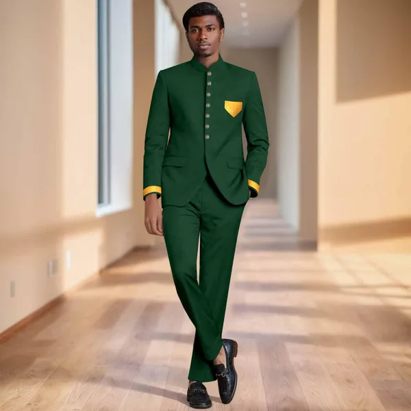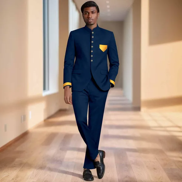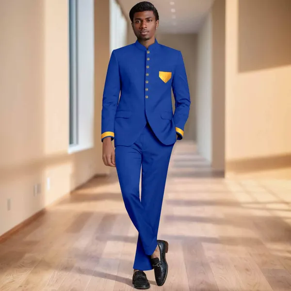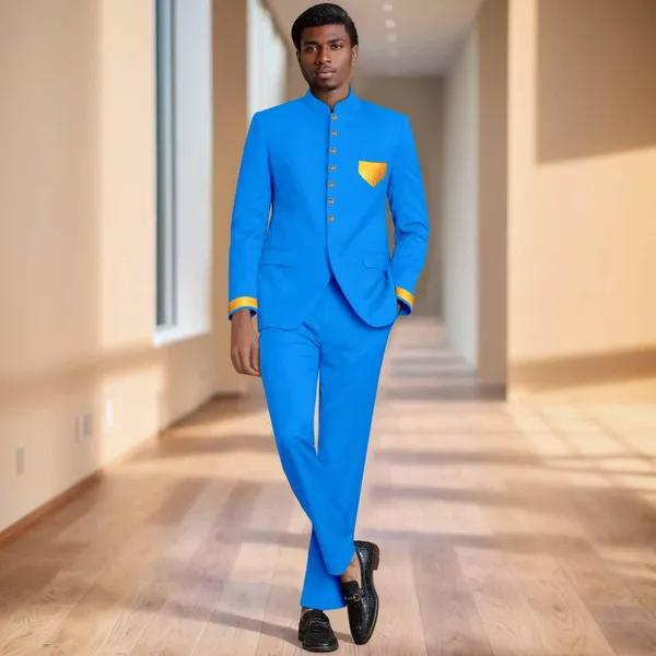 Men`s Business Suits Single Breasted Embroidery Pocket Blazer and Pants 2 Piece Set Formal Outfits for Party Wedding