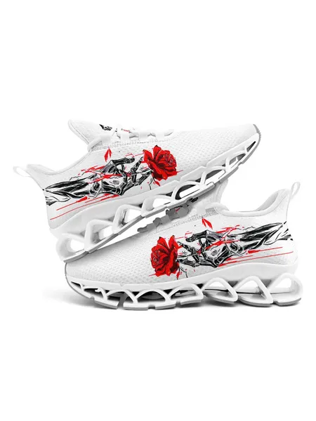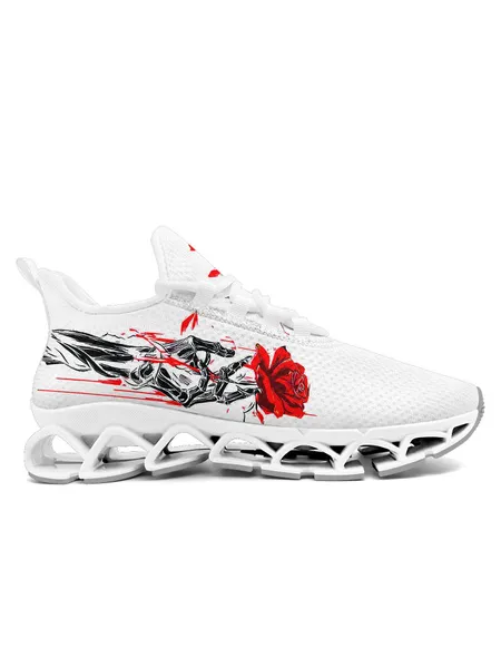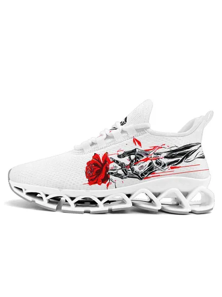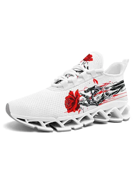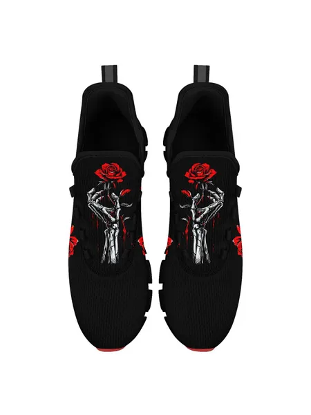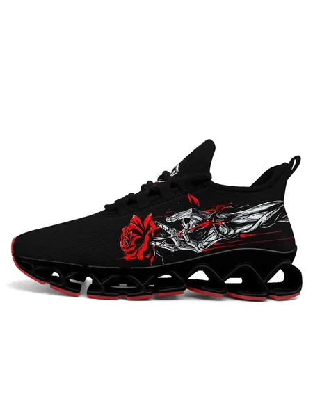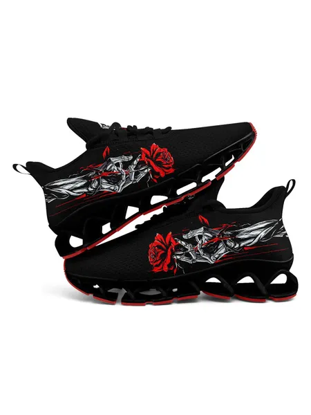 Men's Fashionable Skull Print Lace Up Walking Shoes, Boy Casual Comfortable Non-slip Shock Absorption Running Sports Shoes, Comfy Trendy Shoes for Men, Footwear Sneaker Shoes Trending Streetwear Shoes
