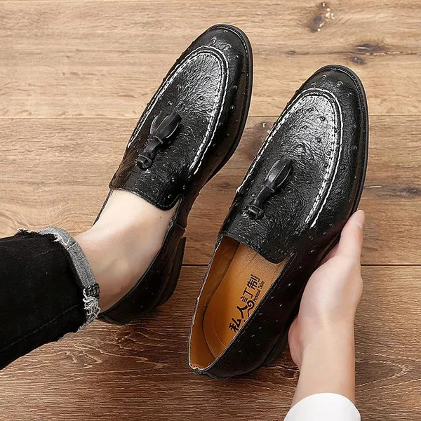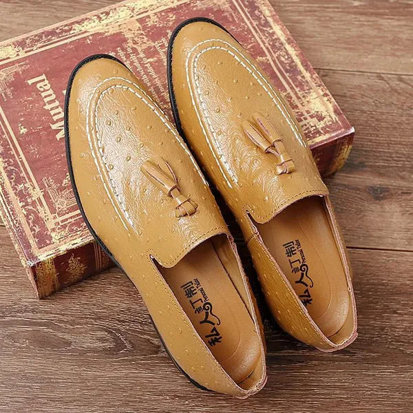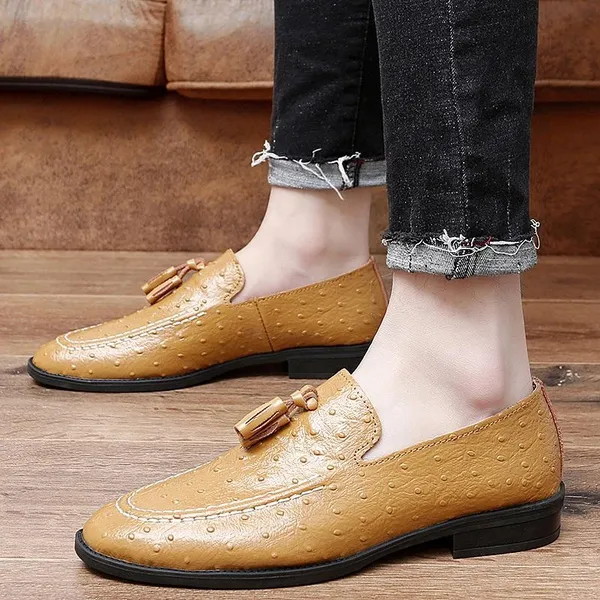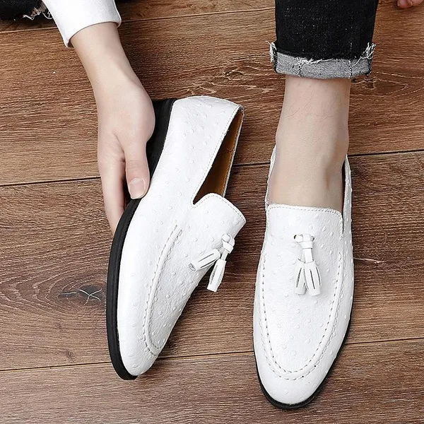 Welcome to our store!!! 1.Please NOTE our size is not standard US size, and it is only equal to foot length! Look, The size you select is USA size when you make order, NOT UK SIZE!!! Thanks a lot! 2.Please take a closer look at our size phote! Please double check the Size/Color/Quantity when you placed the order, we can not change those after the order was shipped out. 3.If your foot is wider than normal, then please choose one size larger. 4.Package: 1×shoes(pair) (Attention: NO shoebox). 5.The item will be shipped within 24 hours once we receive the order. 6.If you are satisfied with our product and service,Your Positive Feedback&a 5-Star Review is much appreciated. Wish you a happy shopping~ Item Specifics:Men's White/Yellow/Black Orstrich Skin Embossed Genuine Leather Tassel Loafers Gender:Men Upper Material:Genuine Leather Outsole Material:Rubber Closure Type:Slip on Toe Shape:Round moc toe Color:White/Yellow/Black Size:36-45 Size Chart US4.0= EU35= CN35= 225mm (barefoot length) US5.0= EU36= CN36= 230mm US5.5= EU37= CN37= 235mm US6.0= EU38= CN38= 240mm US6.5= EU39= CN39= 245mm US7.0= EU40= CN40= 250 mm US8.0= EU41= CN41= 255mm US8.5= EU42= CN42= 260mm US9.5= EU43= CN43= 265 mm US10 = EU44= CN44= 270mm US11 = EU45= CN45= 275mm US12 = EU46= CN46= 280mm US13 = EU47= CN47= 285mm US14 = EU48= CN48= 290mm US15 = EU49= CN49= 295mm US16 = EU50= CN50= 300mm