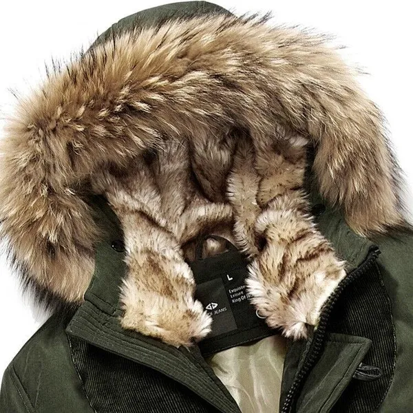 Mens Winter Coats Parka Padded Jackets Fur Collar Hooded Warm Outwear Coats Tops